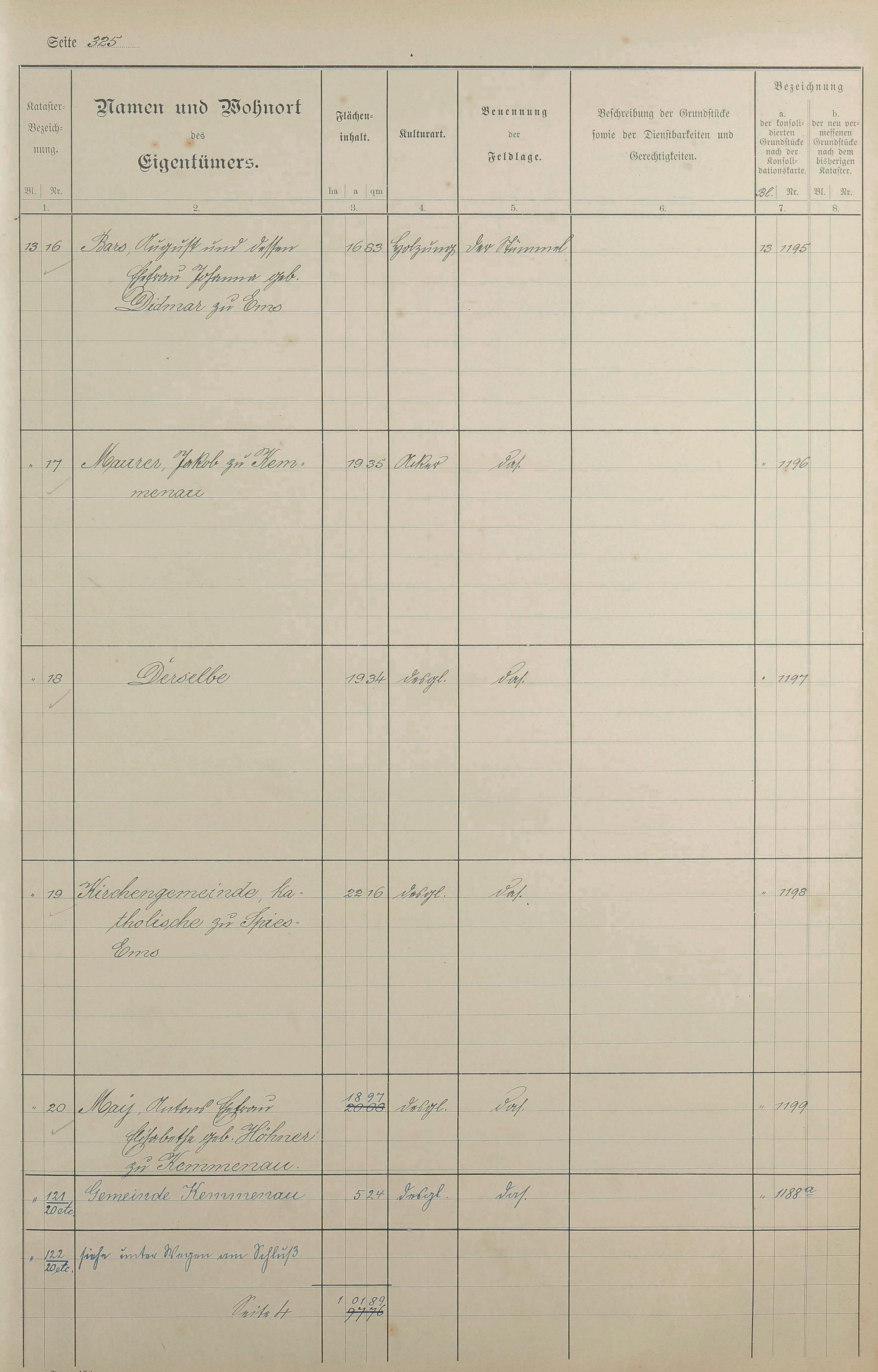 Lagerbuch der konsolidierten Gemarkung Kemmenau von dem Königlichen Kommissar für die Güterkonsolidation Regierungsrat Schiffler und Vermessungsbeamten Steinbichler