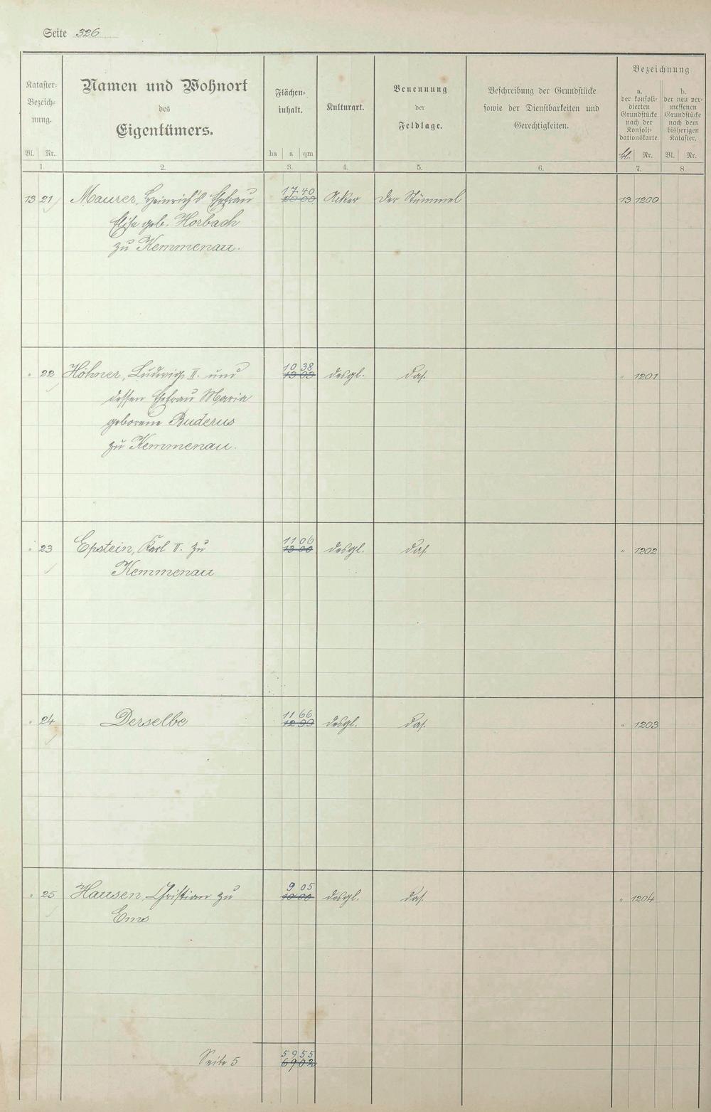 Lagerbuch der konsolidierten Gemarkung Kemmenau von dem Königlichen Kommissar für die Güterkonsolidation Regierungsrat Schiffler und Vermessungsbeamten Steinbichler