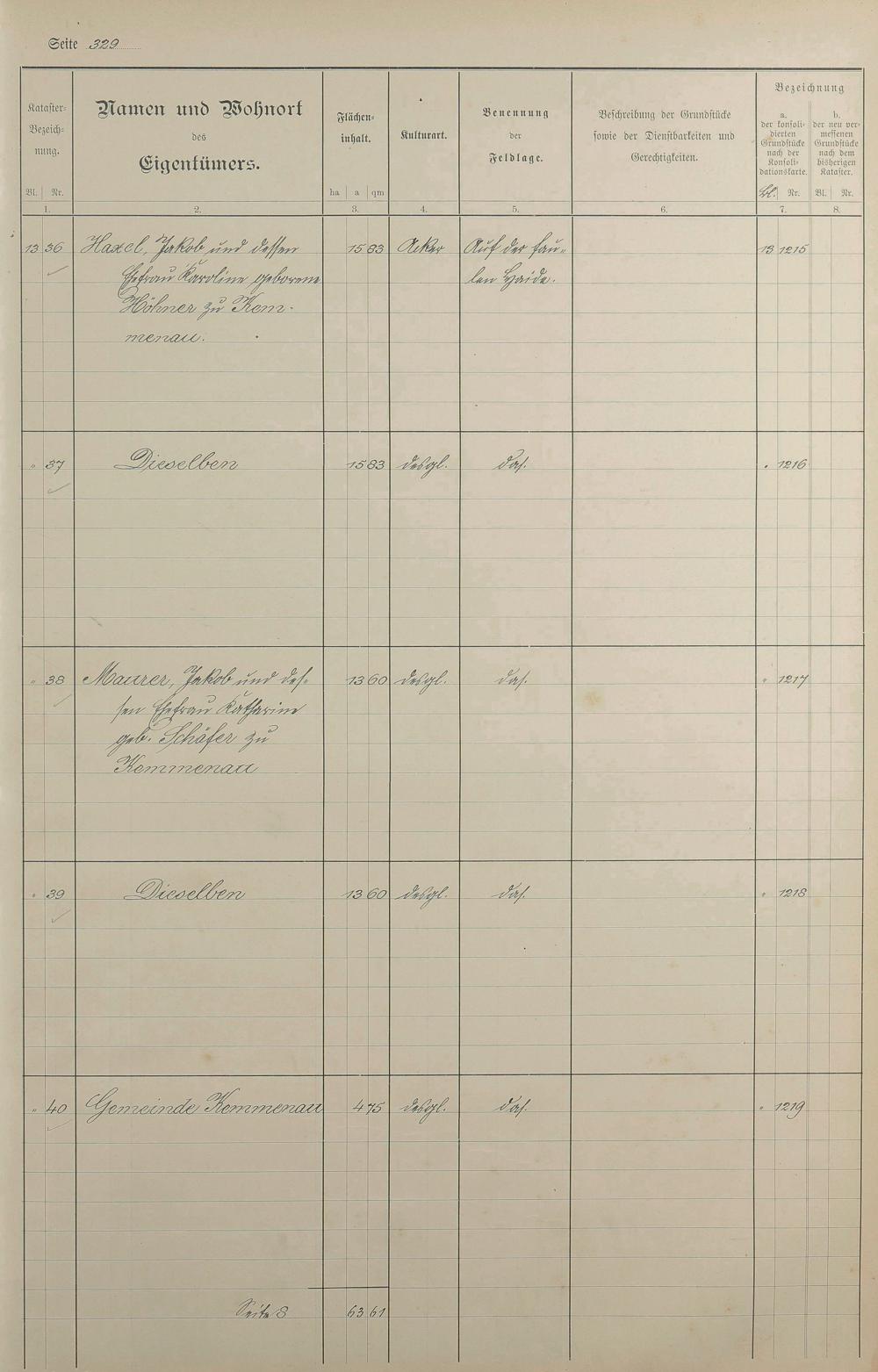 1: Lagerbuch der konsolidierten Gemarkung Kemmenau von dem Königlichen Kommissar...