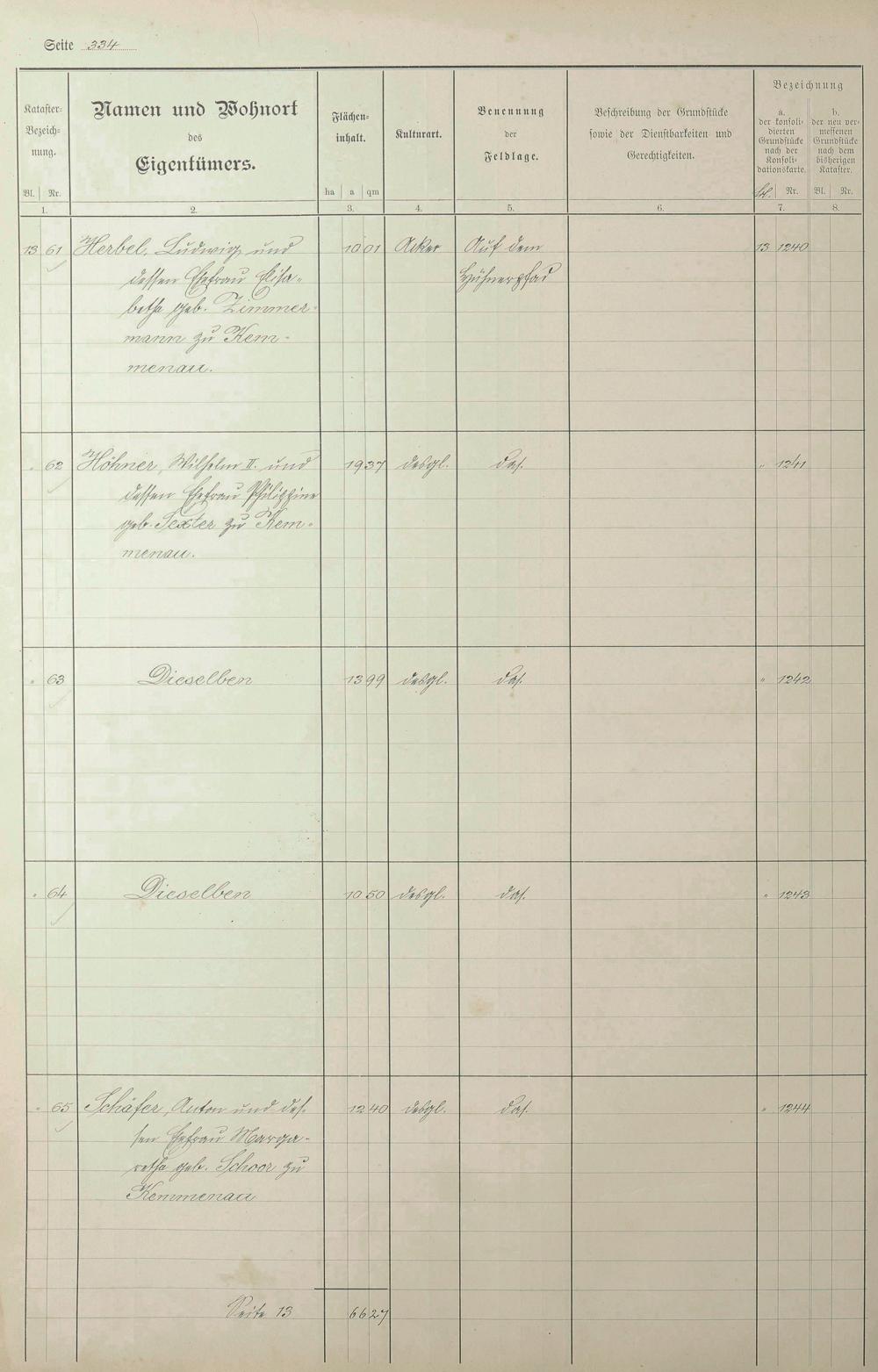 Lagerbuch der konsolidierten Gemarkung Kemmenau von dem Königlichen Kommissar für die Güterkonsolidation Regierungsrat Schiffler und Vermessungsbeamten Steinbichler
