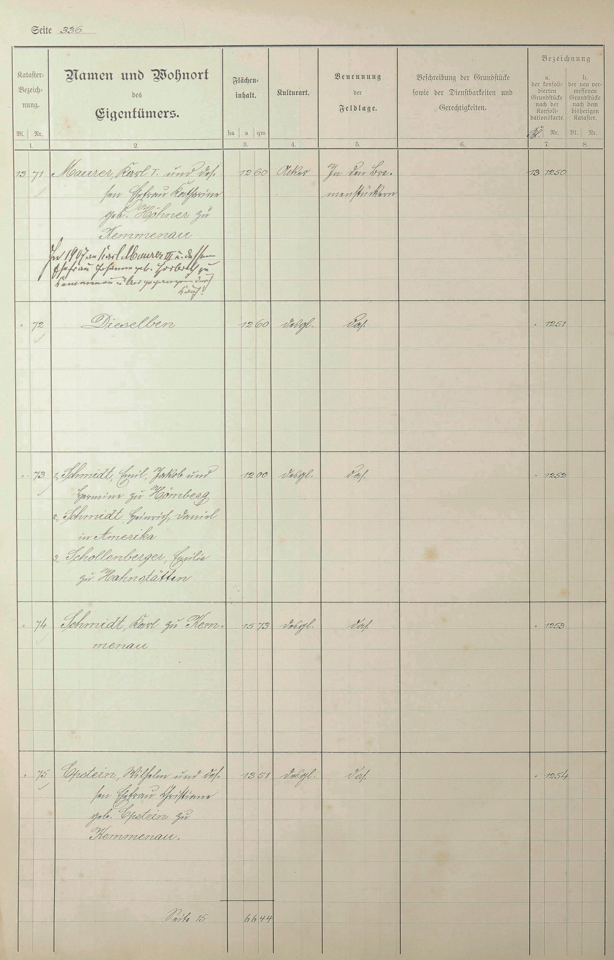 Lagerbuch der konsolidierten Gemarkung Kemmenau von dem Königlichen Kommissar für die Güterkonsolidation Regierungsrat Schiffler und Vermessungsbeamten Steinbichler