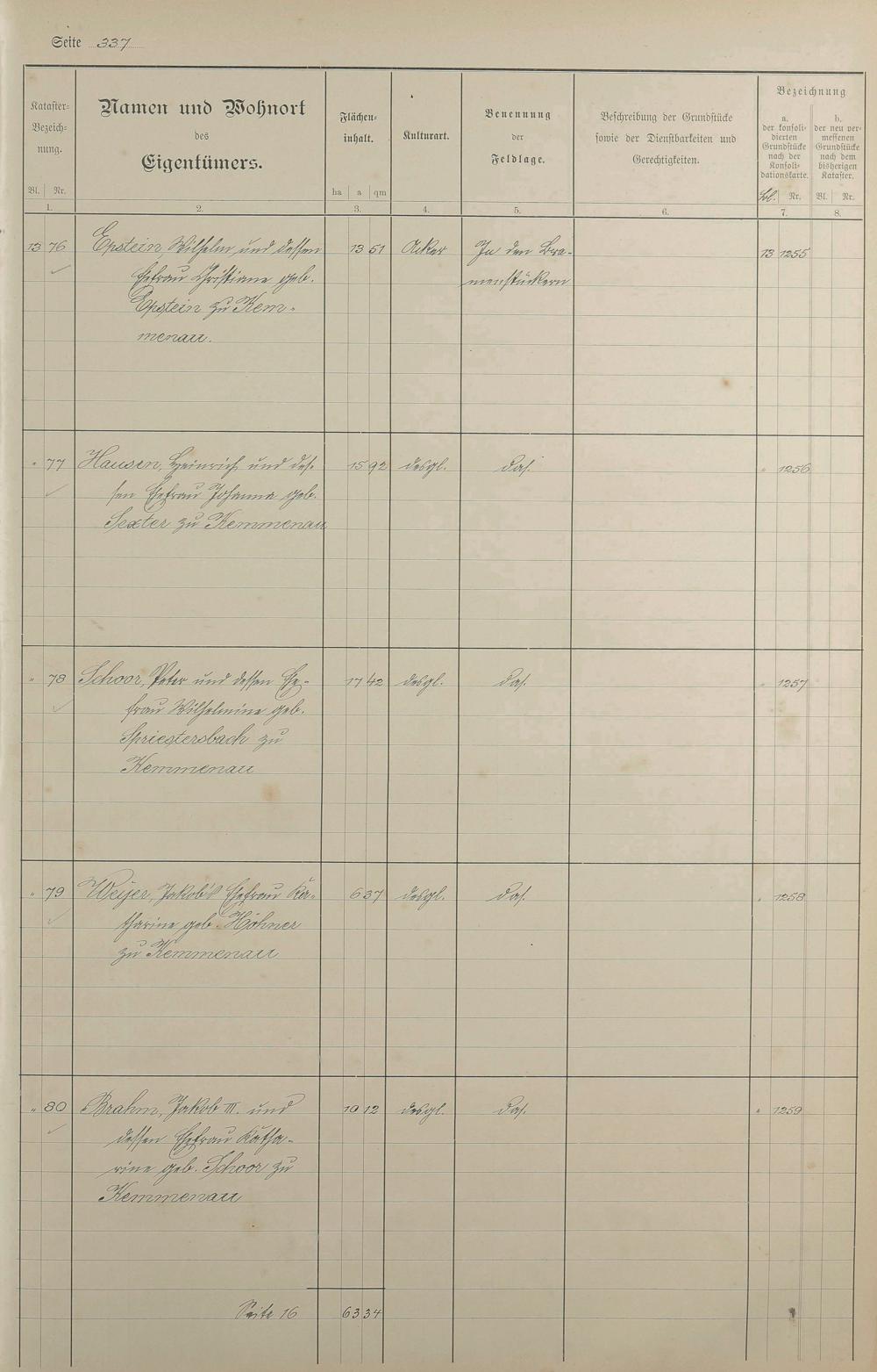 1: Lagerbuch der konsolidierten Gemarkung Kemmenau von dem Königlichen Kommissar...