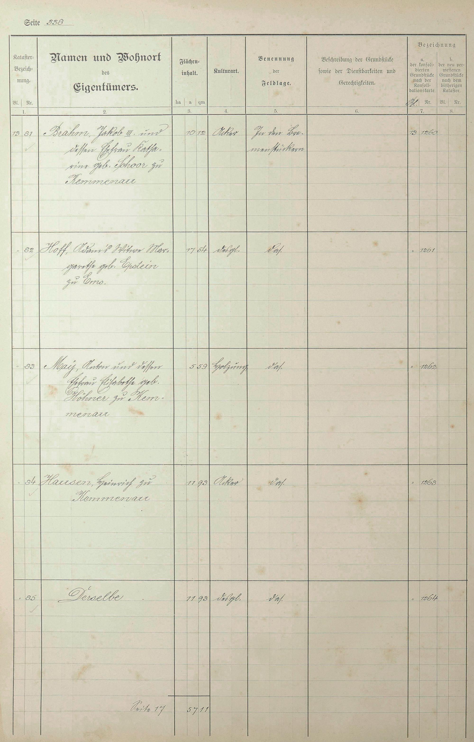 1: Lagerbuch der konsolidierten Gemarkung Kemmenau von dem Königlichen Kommissar...