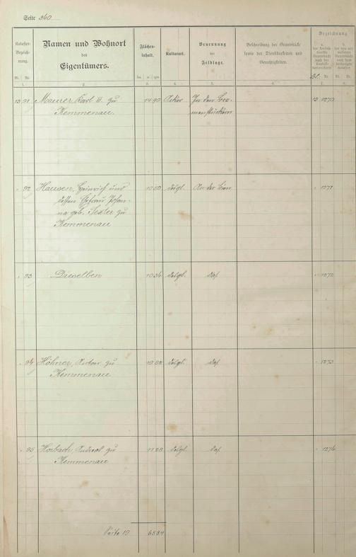 1: Lagerbuch der konsolidierten Gemarkung Kemmenau von dem Königlichen Kommissar...