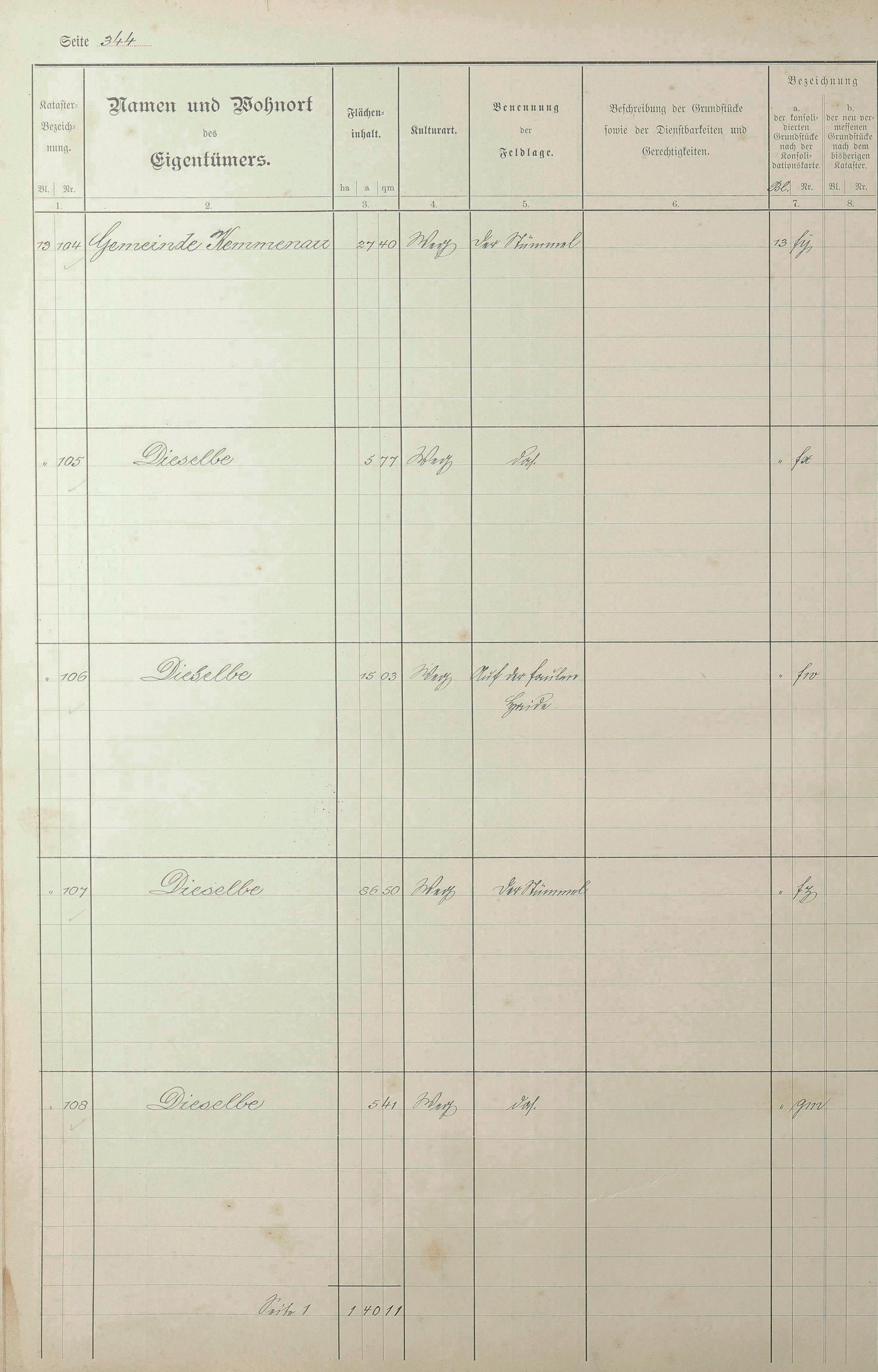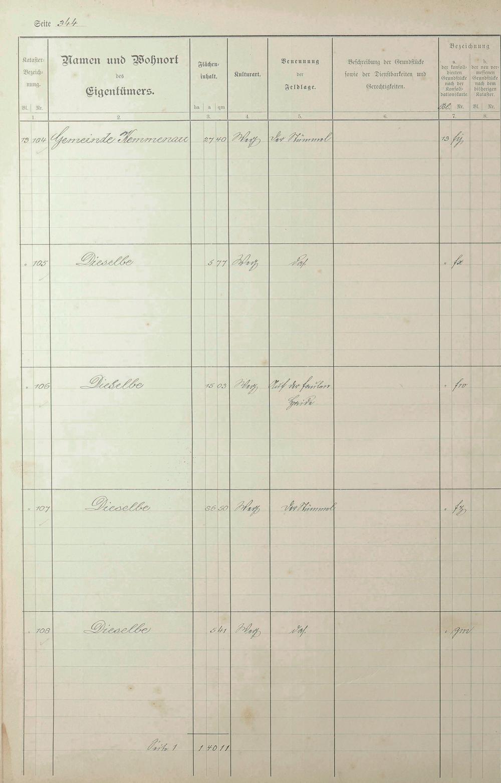 1: Lagerbuch der konsolidierten Gemarkung Kemmenau von dem Königlichen Kommissar...