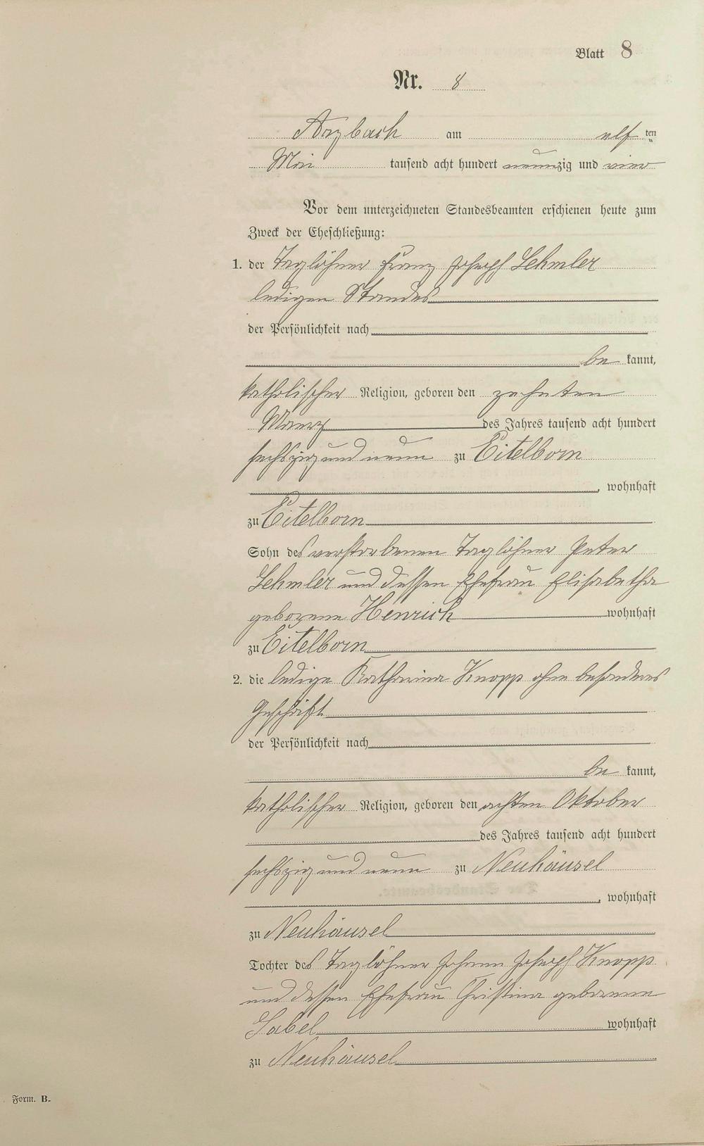 Heiratsregister 1894