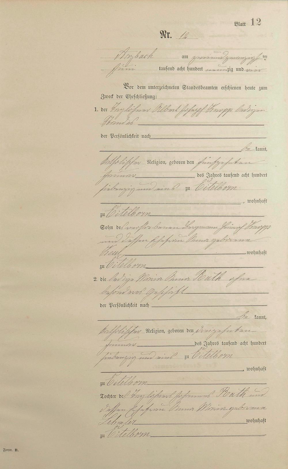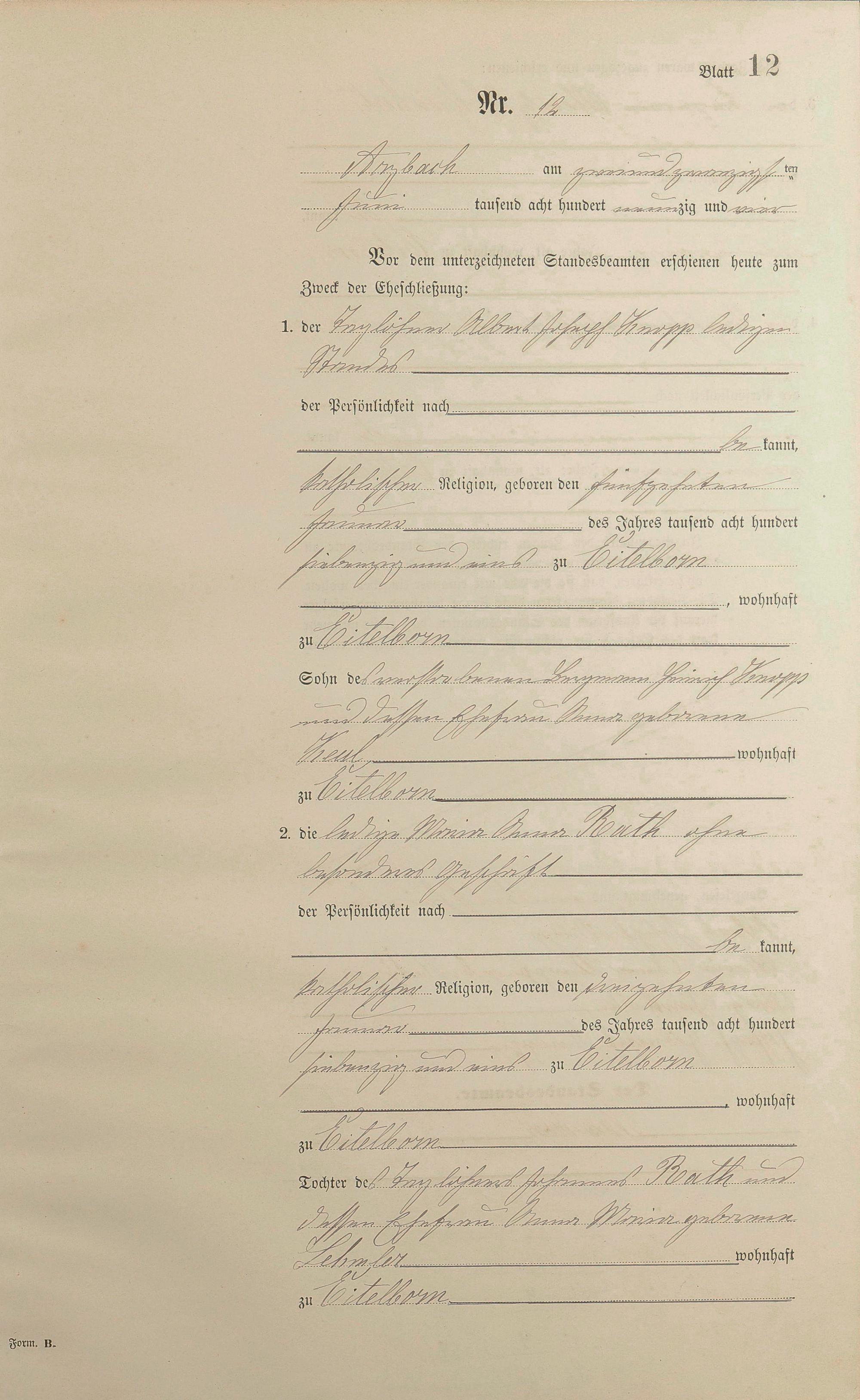 Heiratsregister 1894