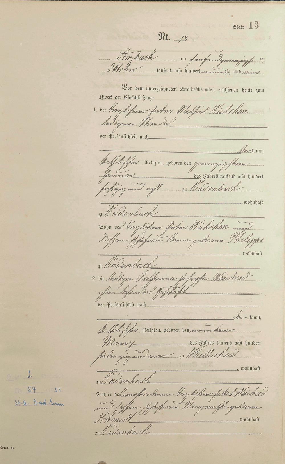 Heiratsregister 1894