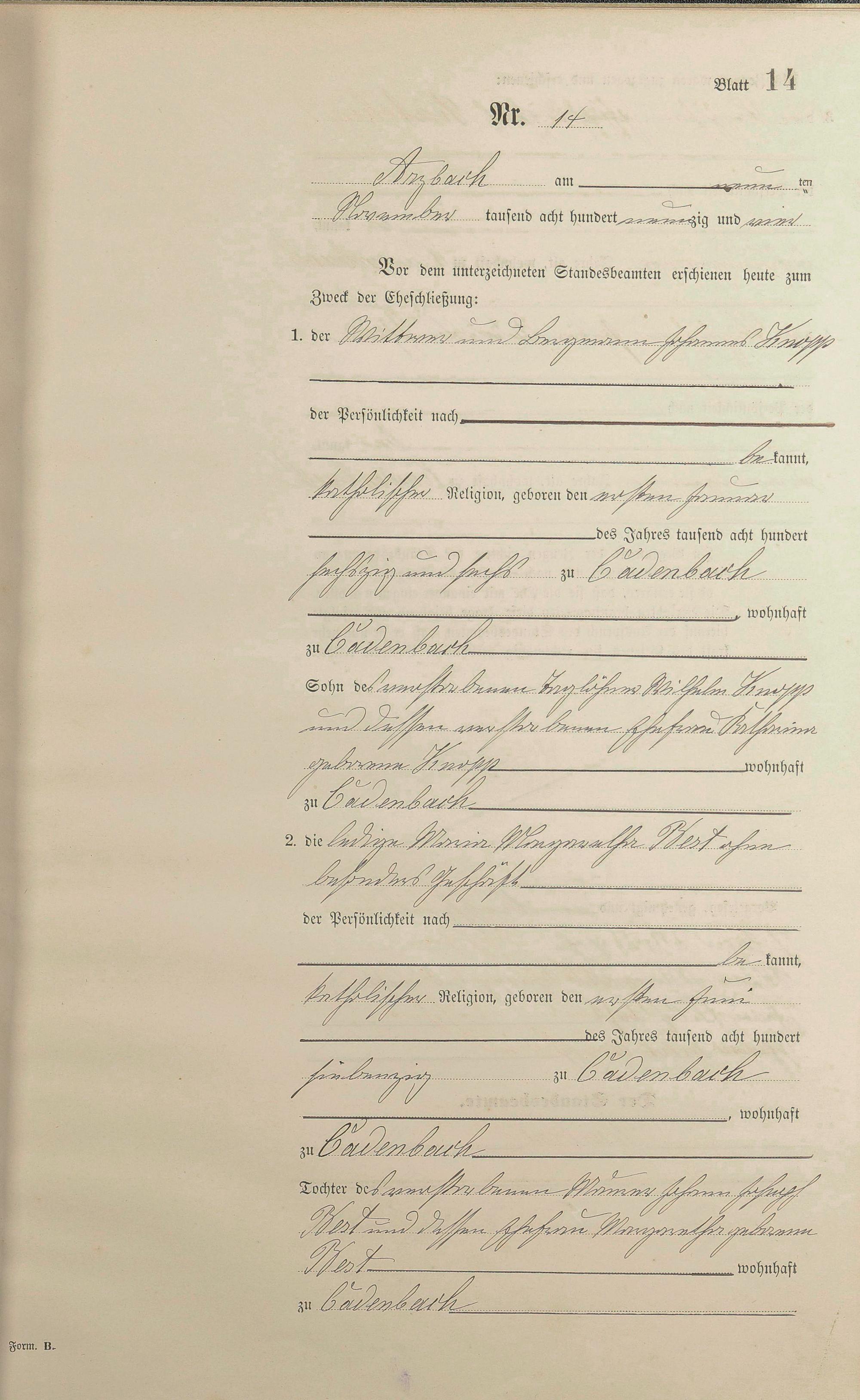 Heiratsregister 1894