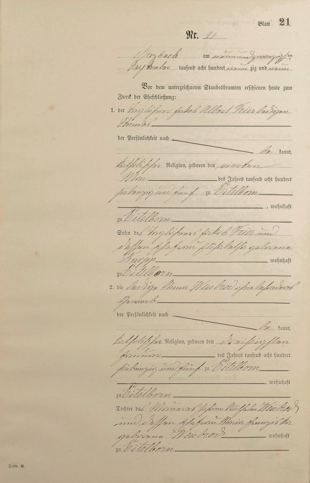 Heiratsregister 1899