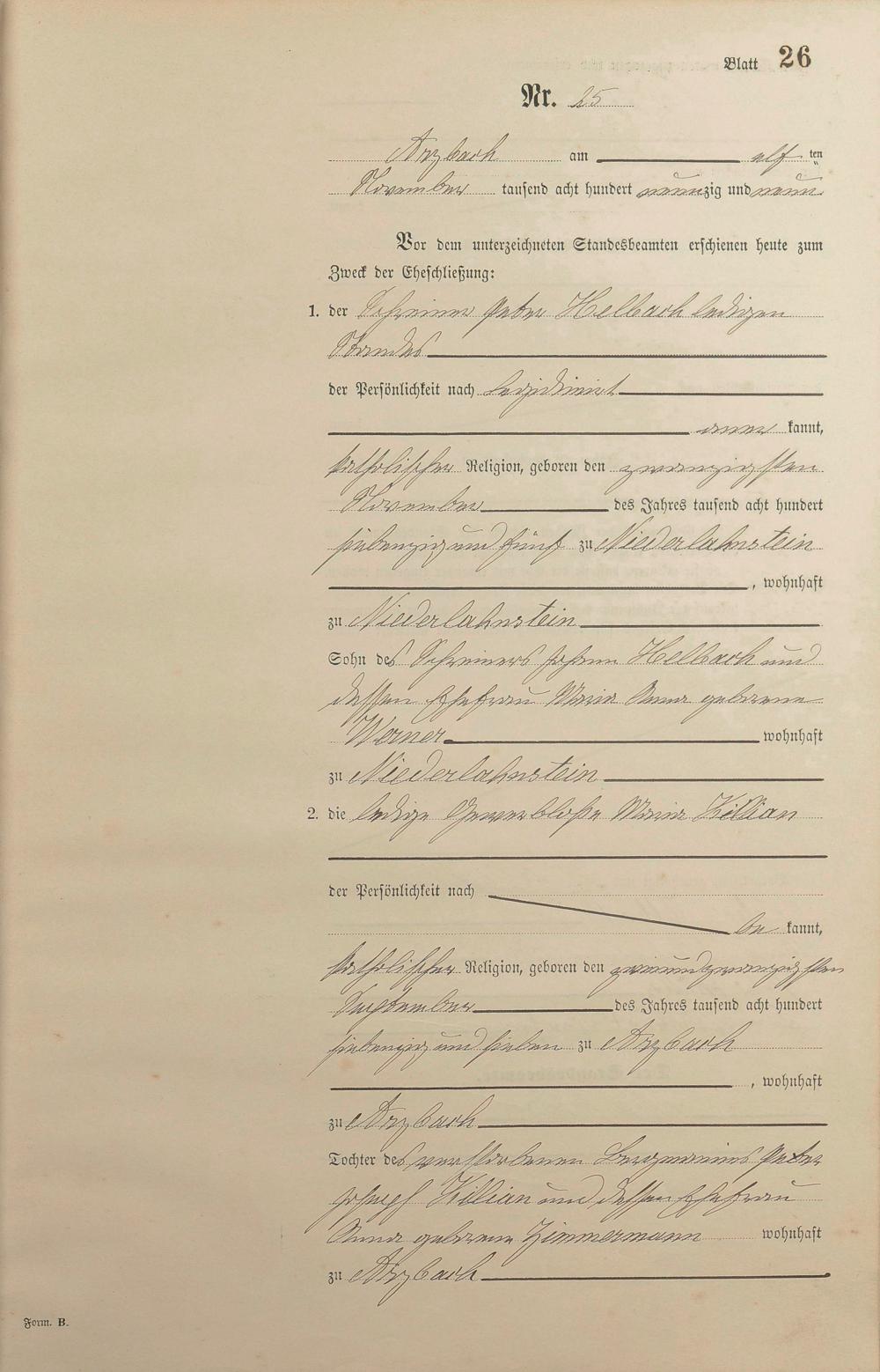 Heiratsregister 1899