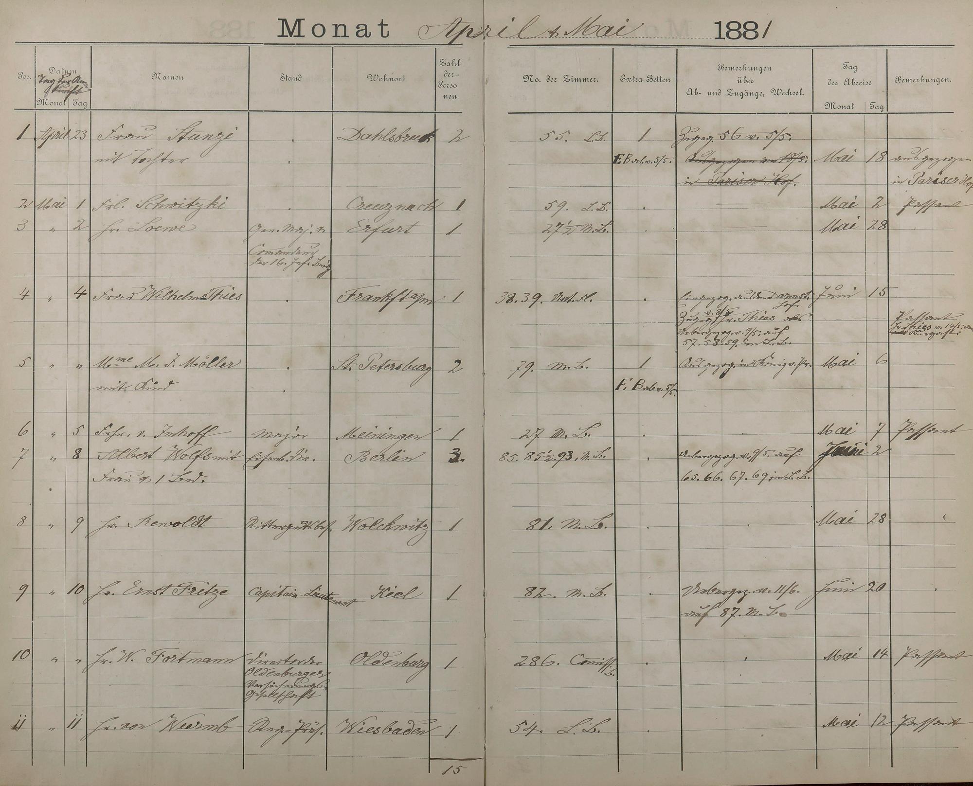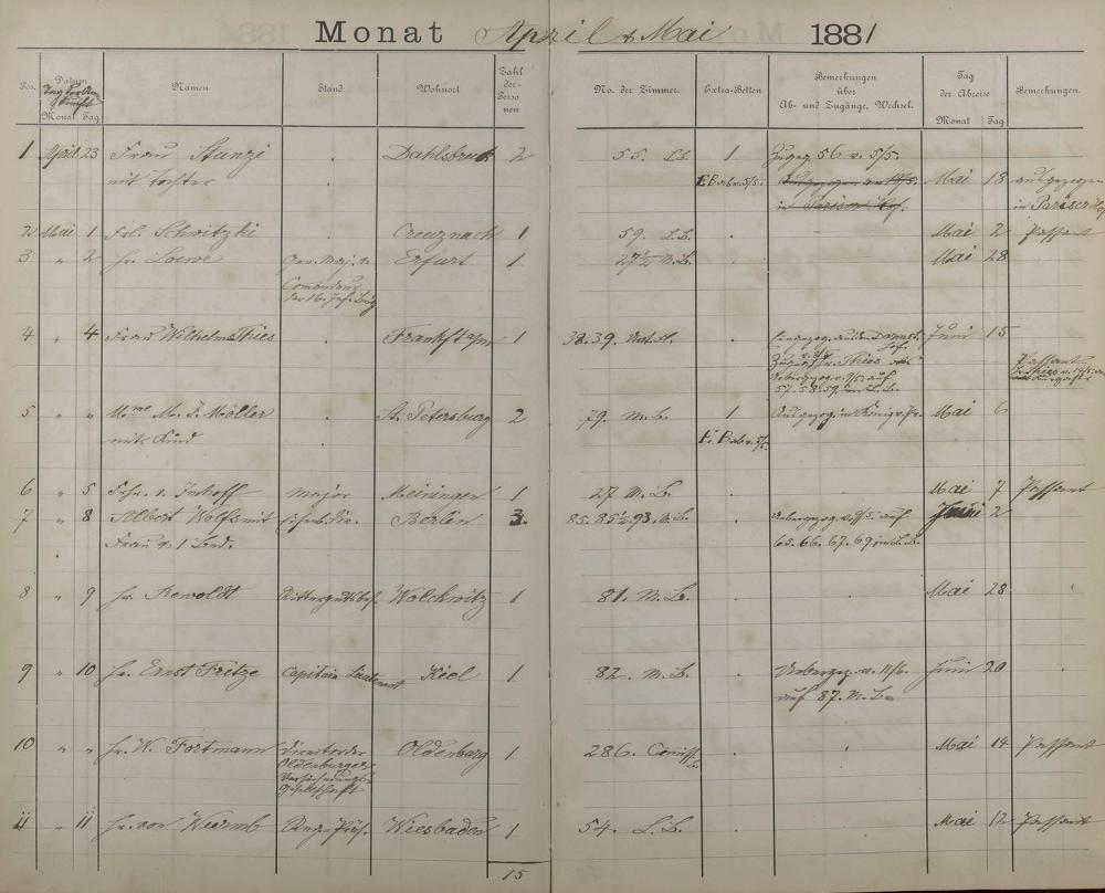 289: Fremdenbuch der Königlichen Kurhausverwaltung 1881 - 1886