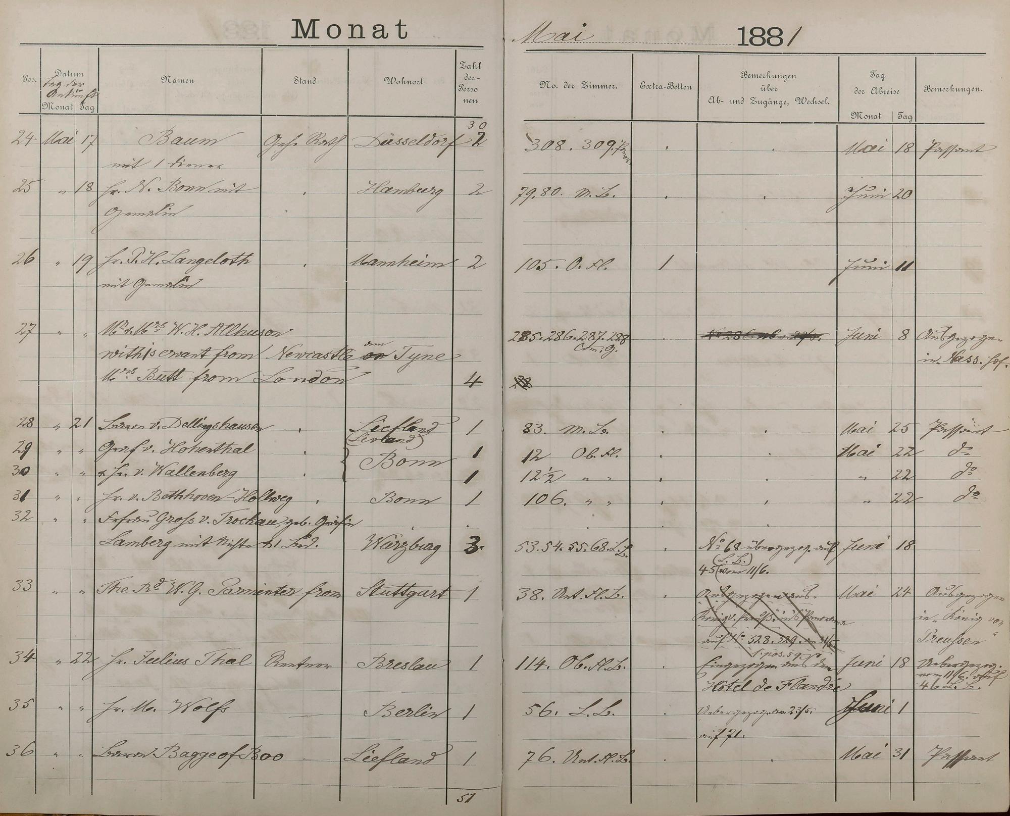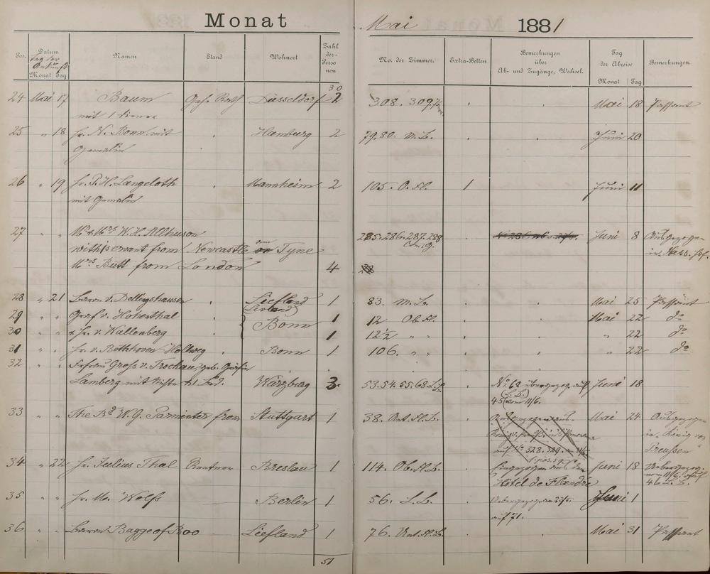 Fremdenbuch der Königlichen Kurhausverwaltung 1881 - 1886
