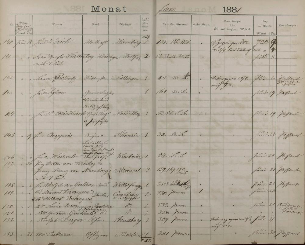 289: Fremdenbuch der Königlichen Kurhausverwaltung 1881 - 1886