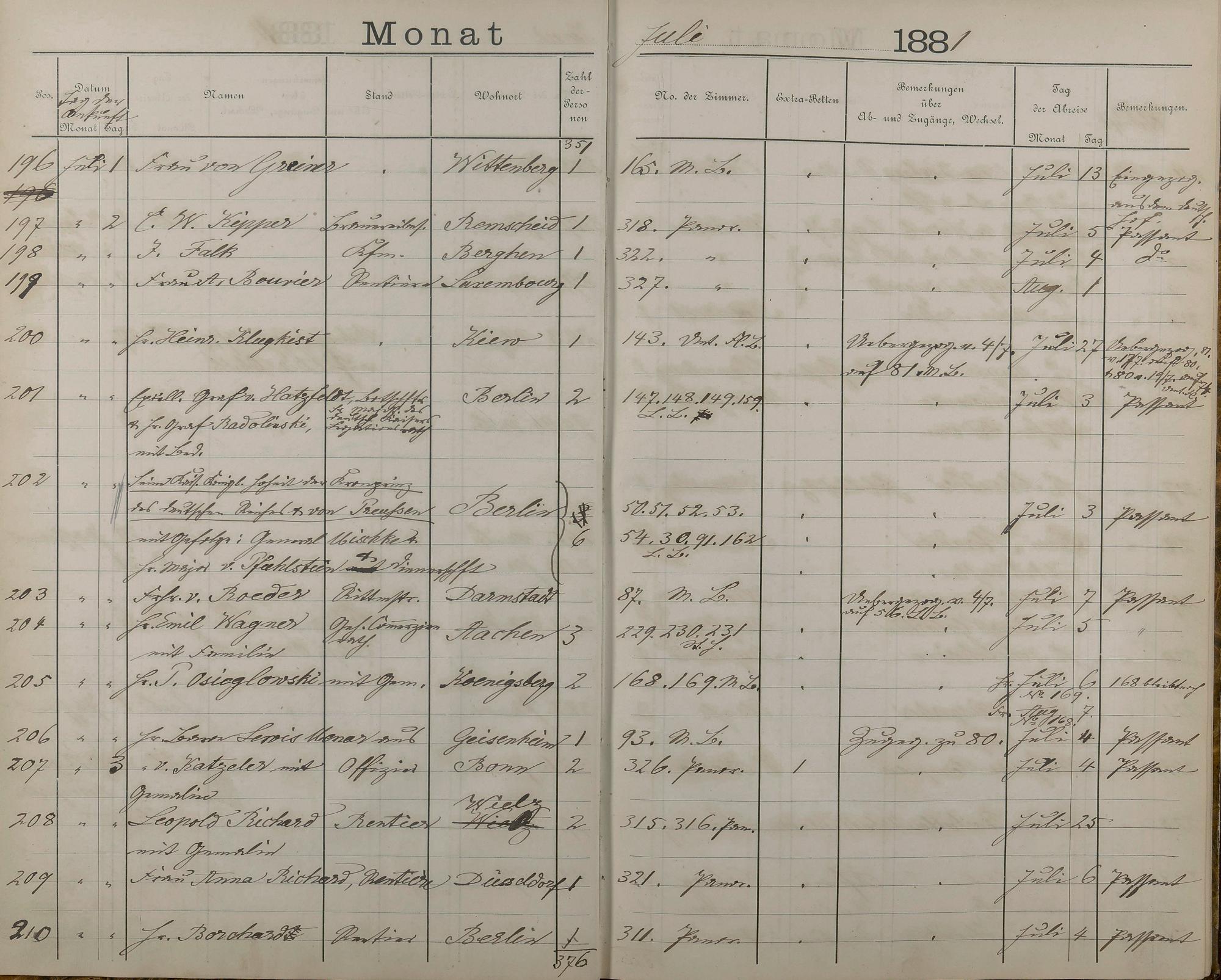 289: Fremdenbuch der Königlichen Kurhausverwaltung 1881 - 1886