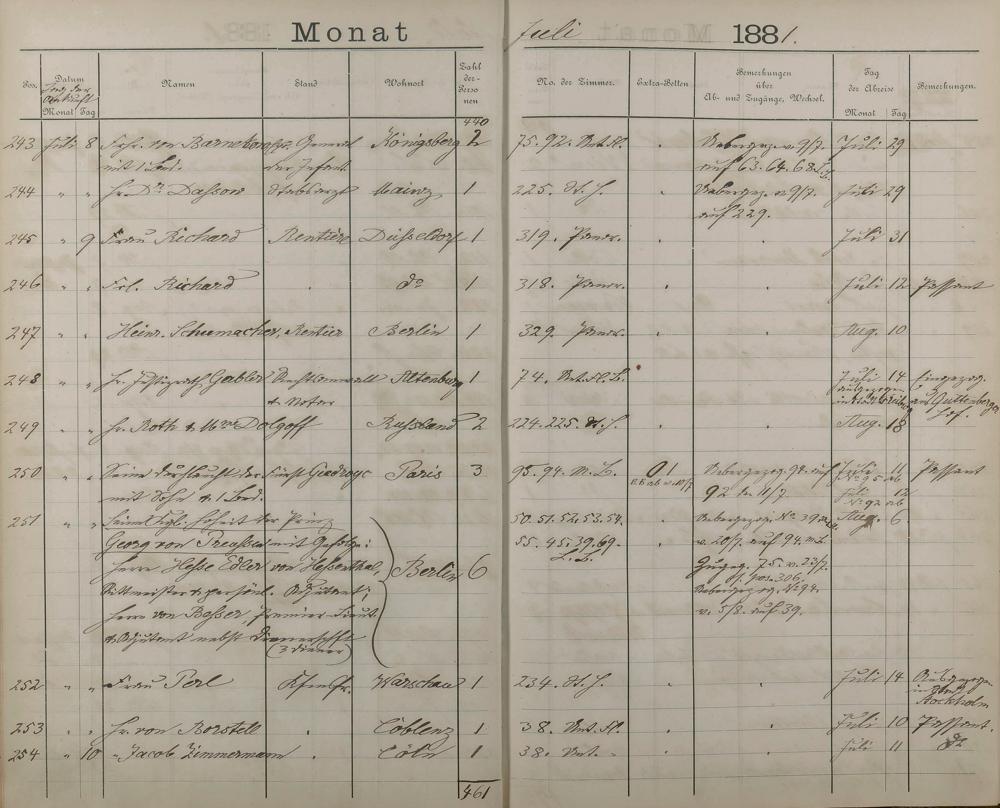 289: Fremdenbuch der Königlichen Kurhausverwaltung 1881 - 1886