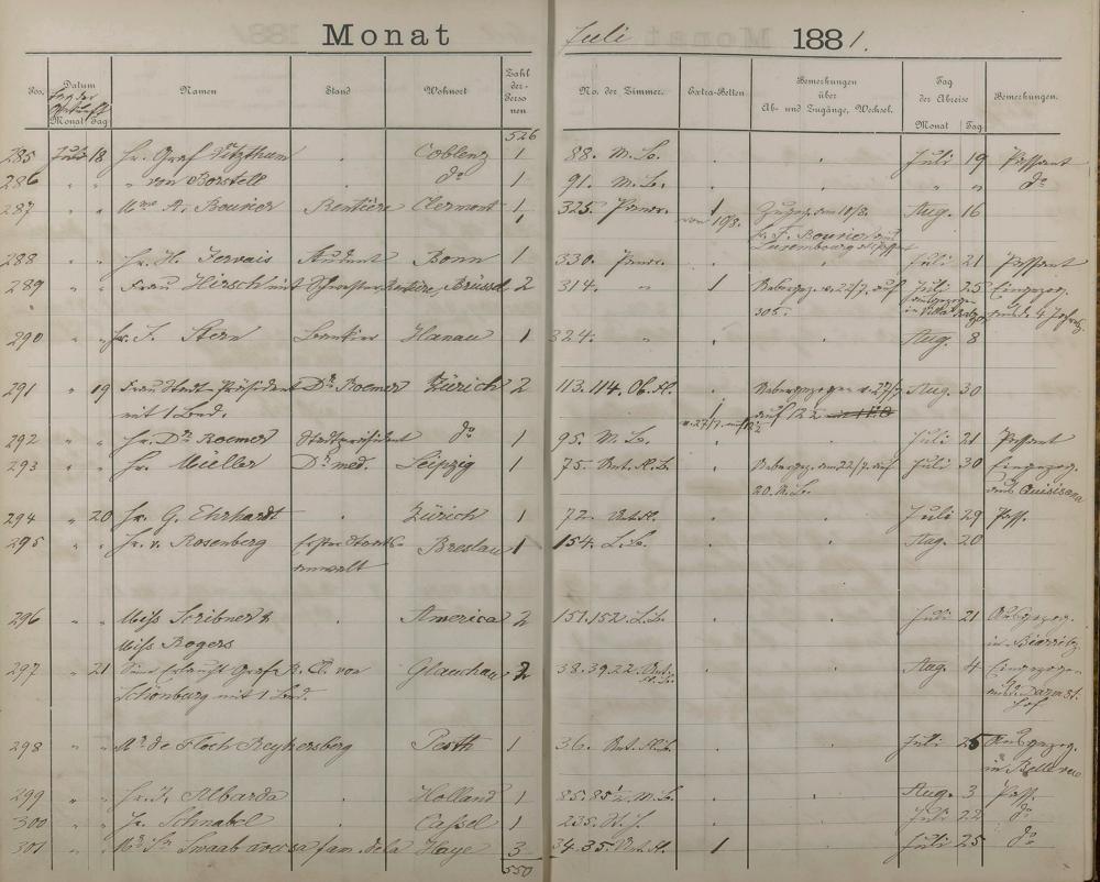 Fremdenbuch der Königlichen Kurhausverwaltung 1881 - 1886