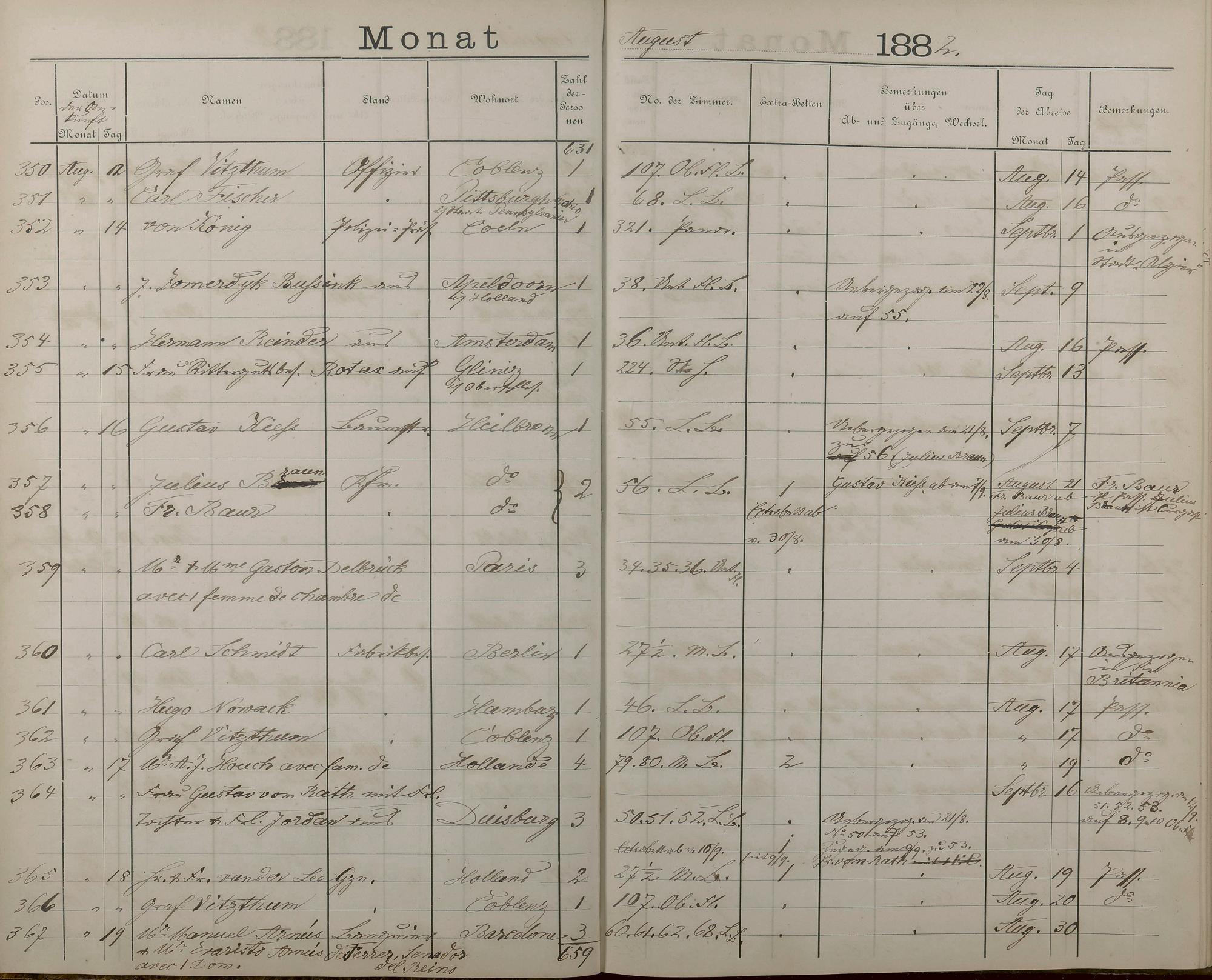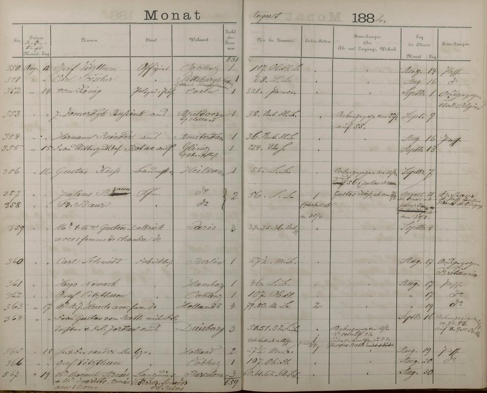 289: Fremdenbuch der Königlichen Kurhausverwaltung 1881 - 1886