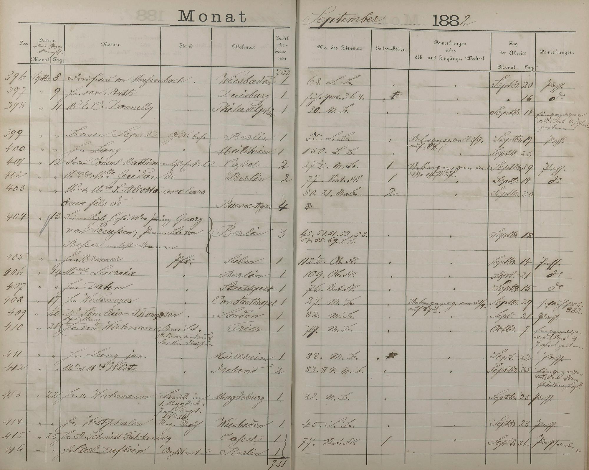 289: Fremdenbuch der Königlichen Kurhausverwaltung 1881 - 1886