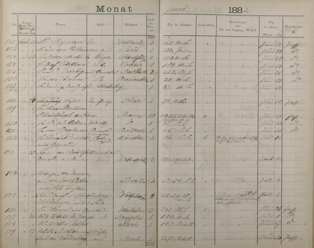 Fremdenbuch der Königlichen Kurhausverwaltung 1881 - 1886