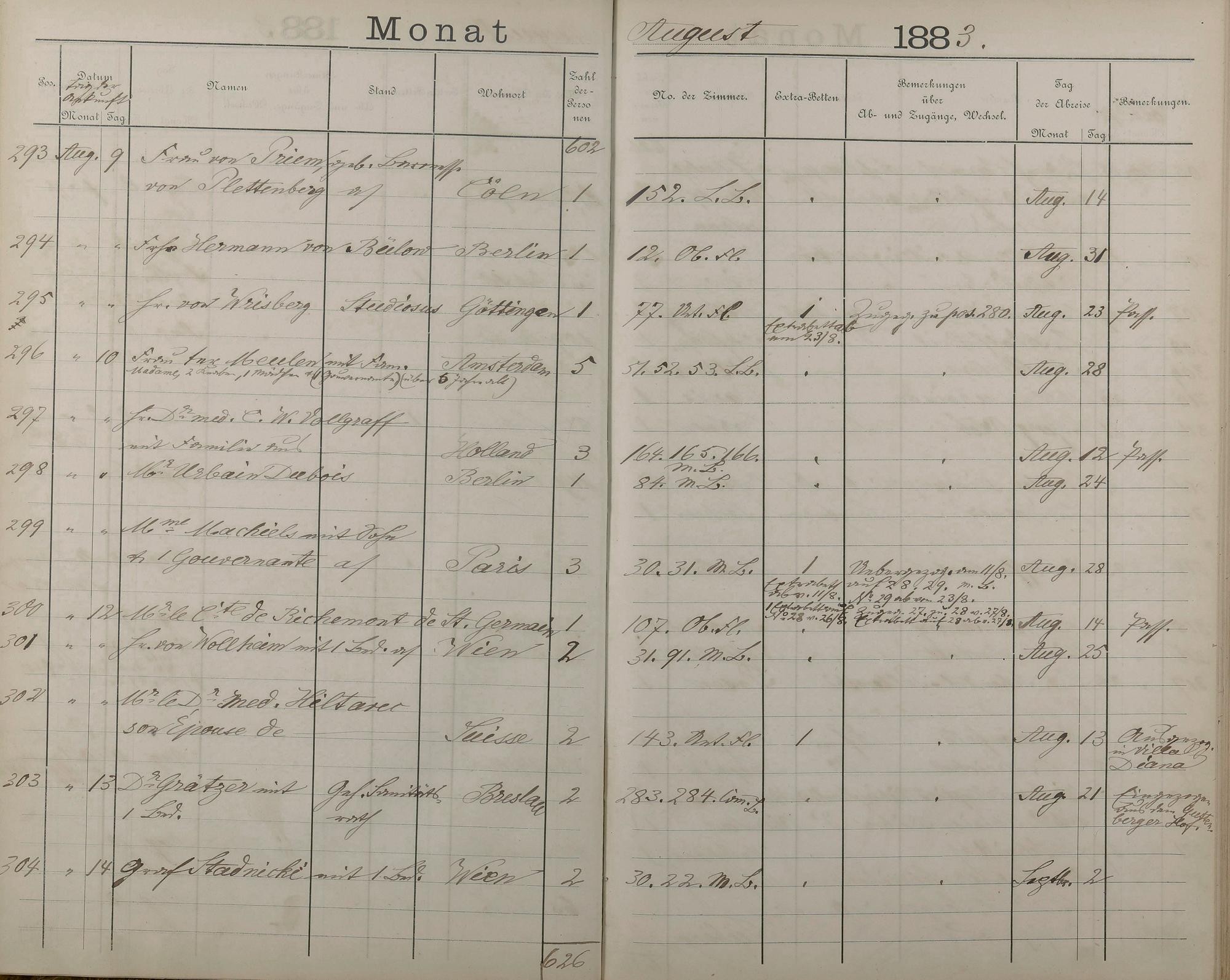 Fremdenbuch der Königlichen Kurhausverwaltung 1881 - 1886