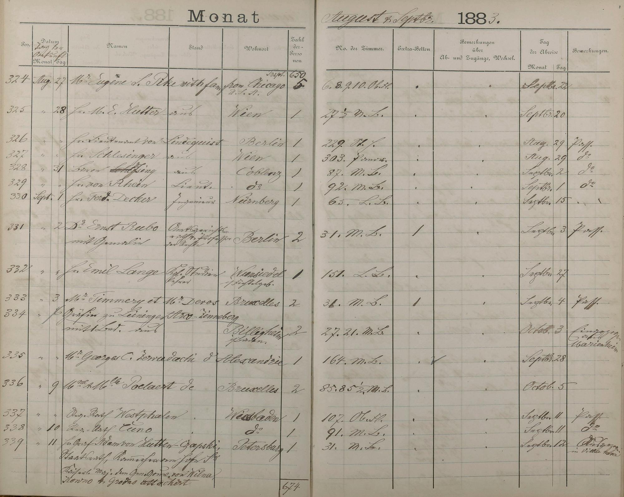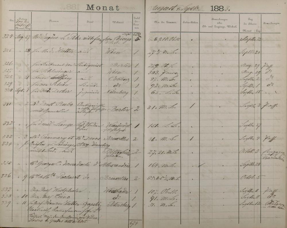 289: Fremdenbuch der Königlichen Kurhausverwaltung 1881 - 1886