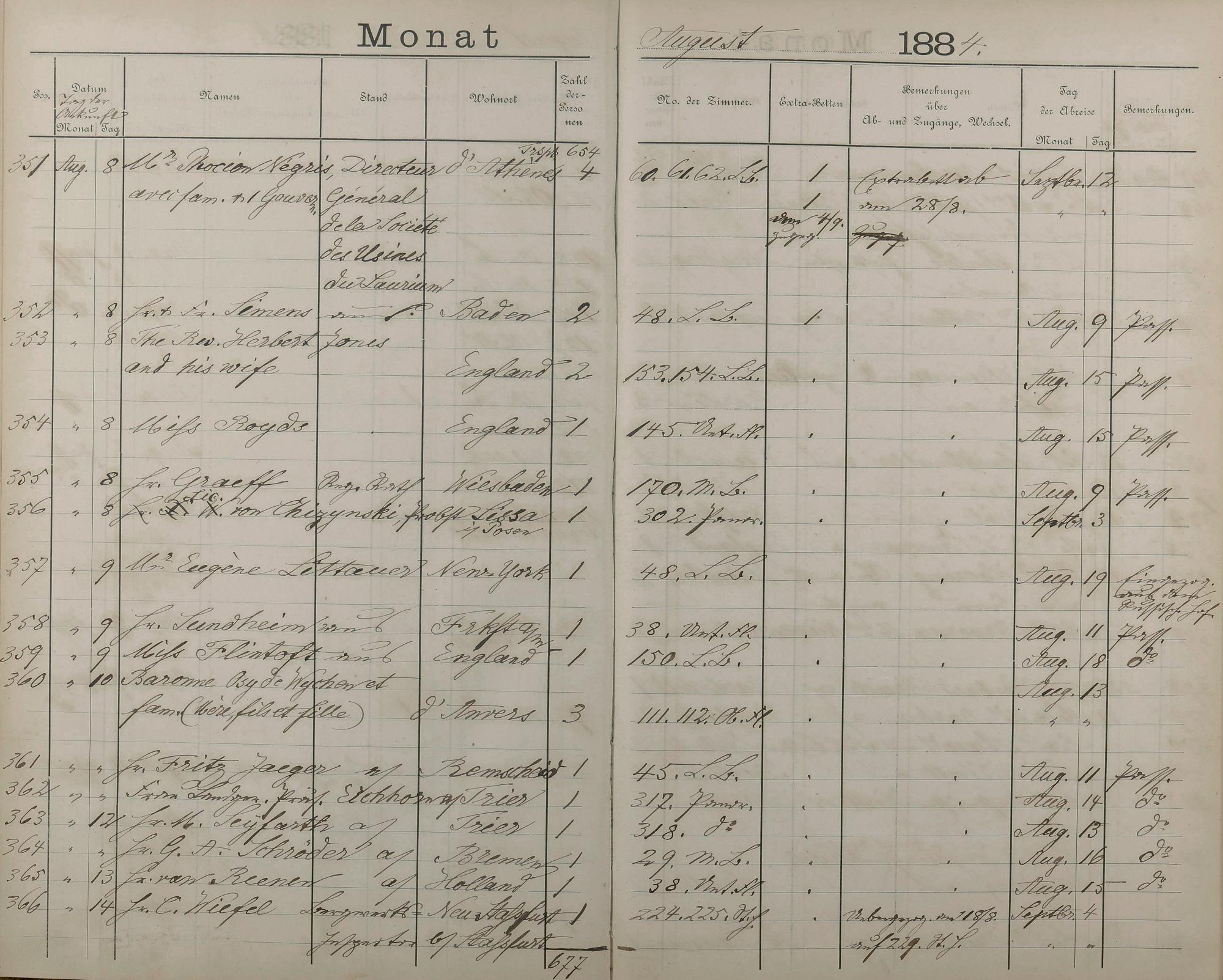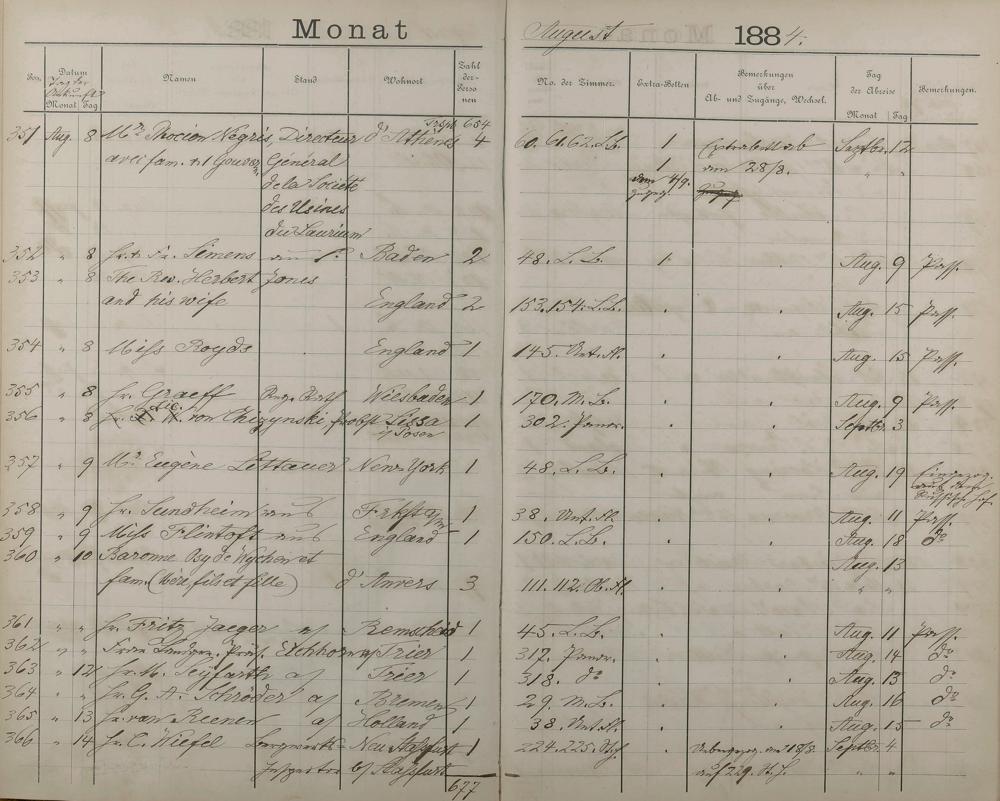 Fremdenbuch der Königlichen Kurhausverwaltung 1881 - 1886
