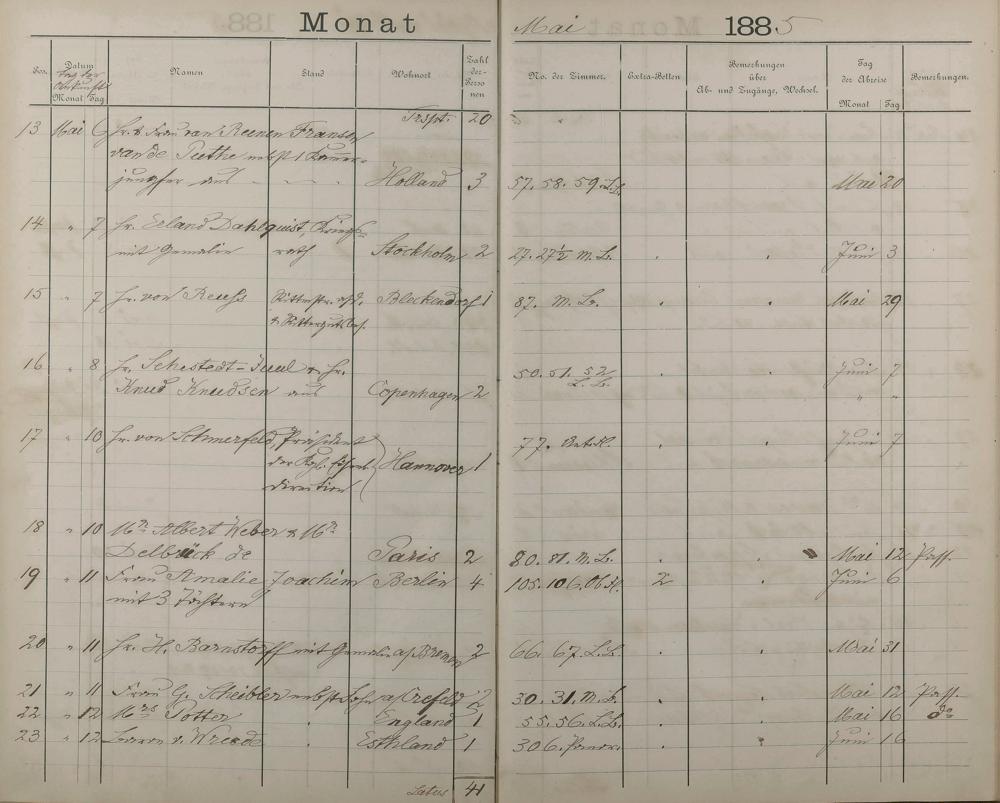 289: Fremdenbuch der Königlichen Kurhausverwaltung 1881 - 1886