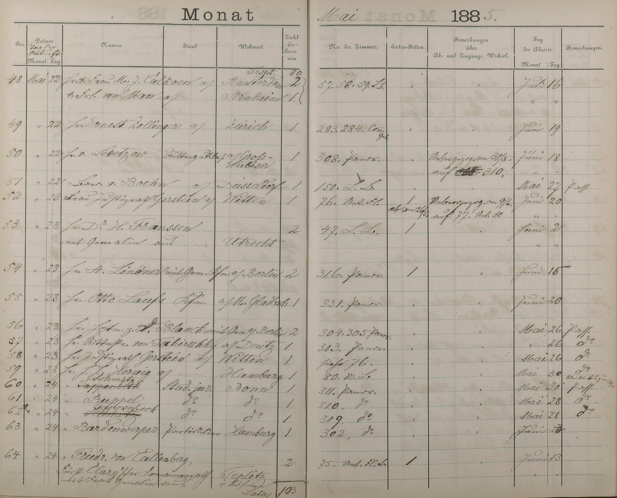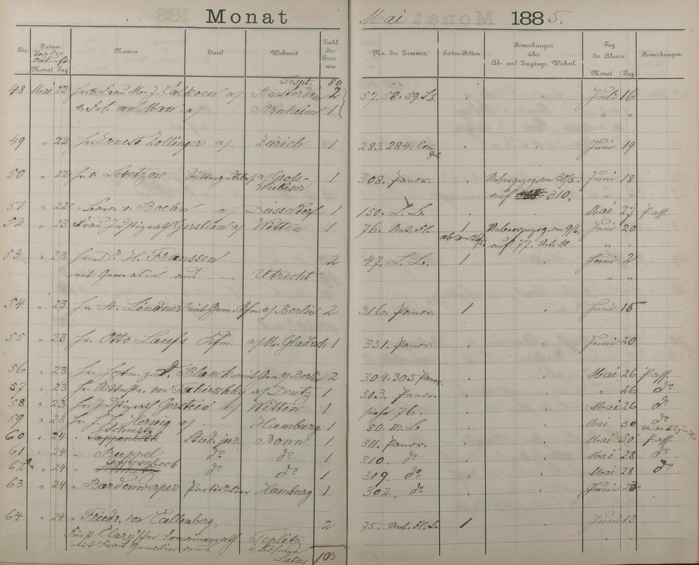 289: Fremdenbuch der Königlichen Kurhausverwaltung 1881 - 1886