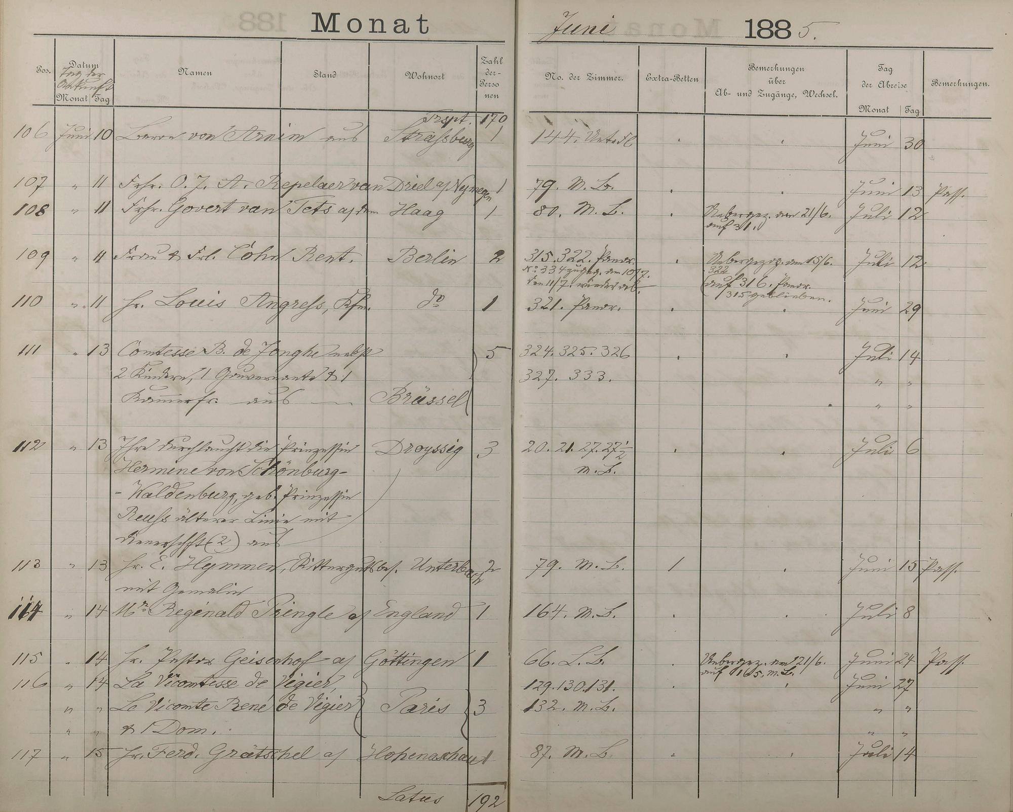 Fremdenbuch der Königlichen Kurhausverwaltung 1881 - 1886