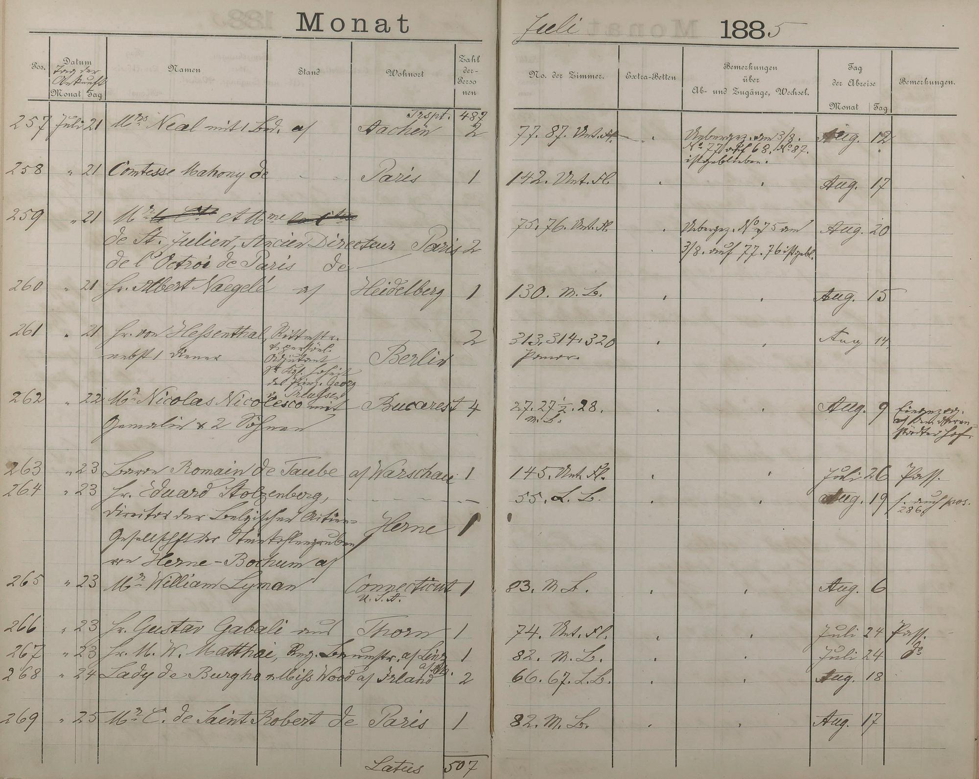 Fremdenbuch der Königlichen Kurhausverwaltung 1881 - 1886