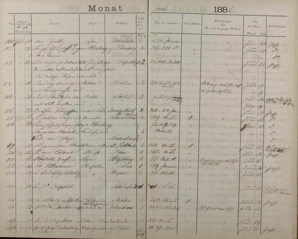 Fremdenbuch der Königlichen Kurhausverwaltung 1881 - 1886