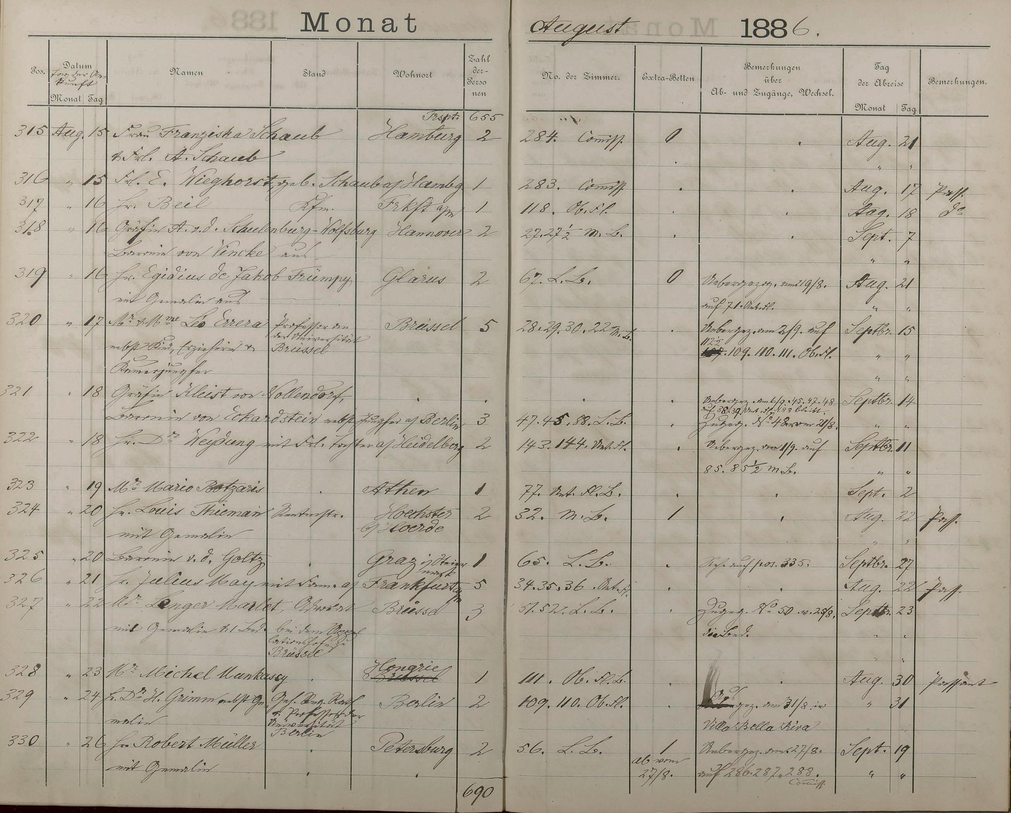 289: Fremdenbuch der Königlichen Kurhausverwaltung 1881 - 1886
