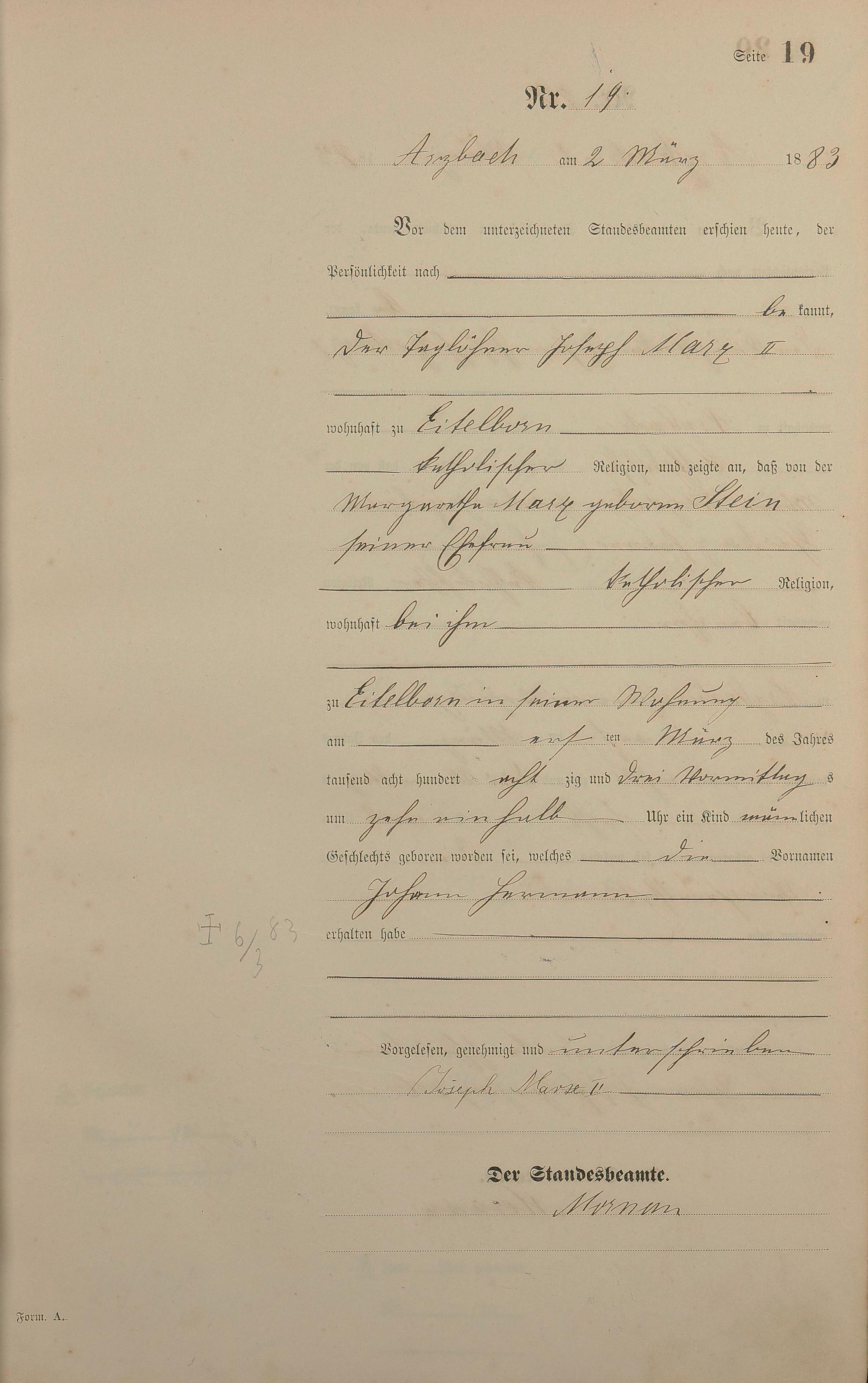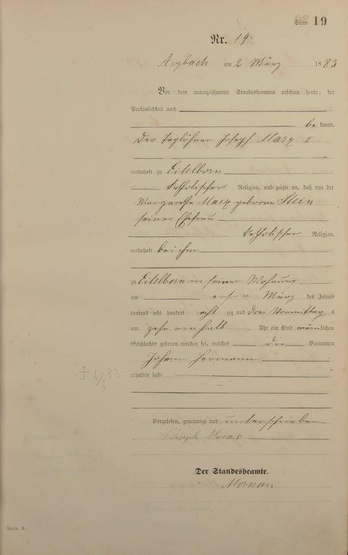 Geburtsregister 1883