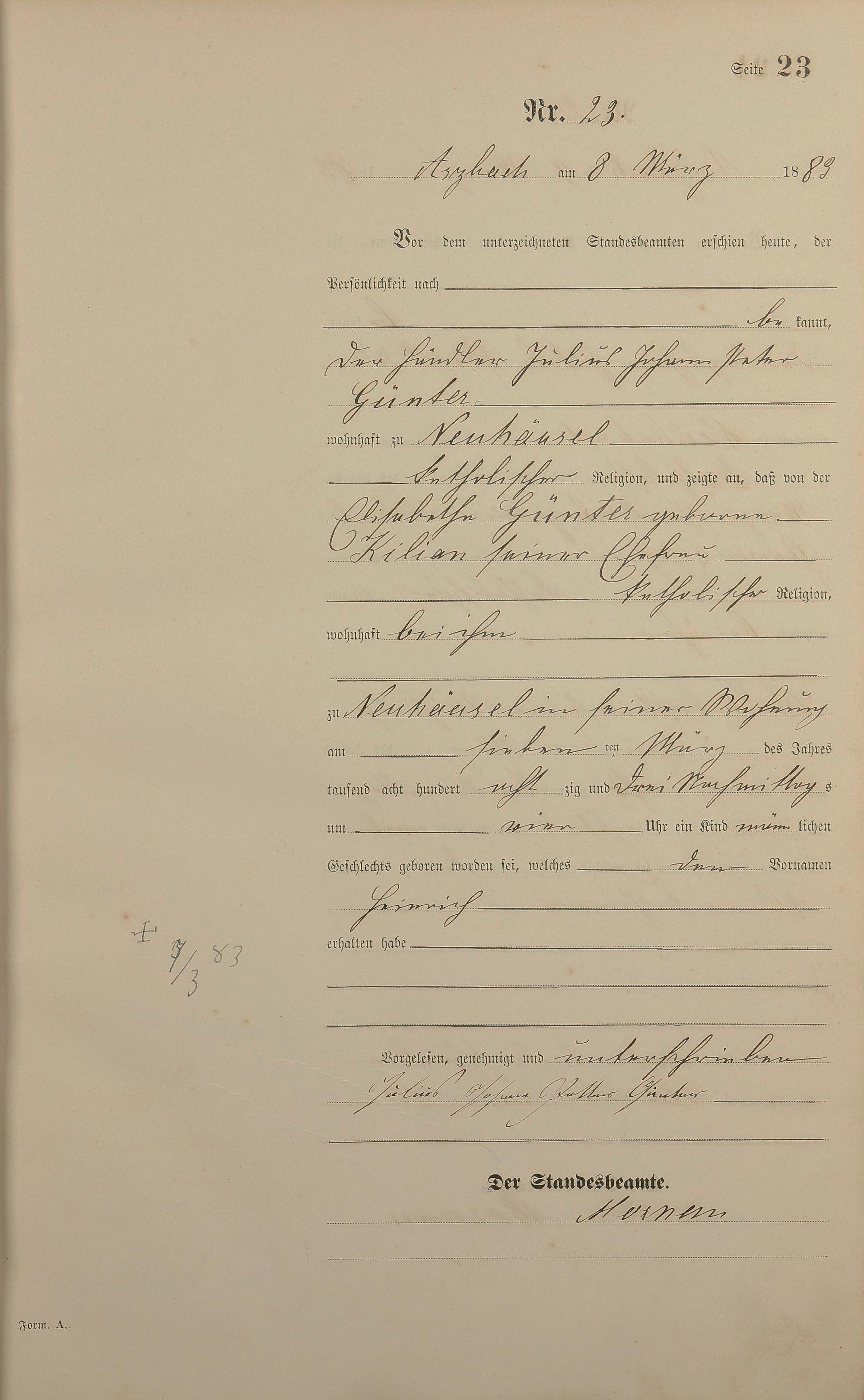 Geburtsregister 1883