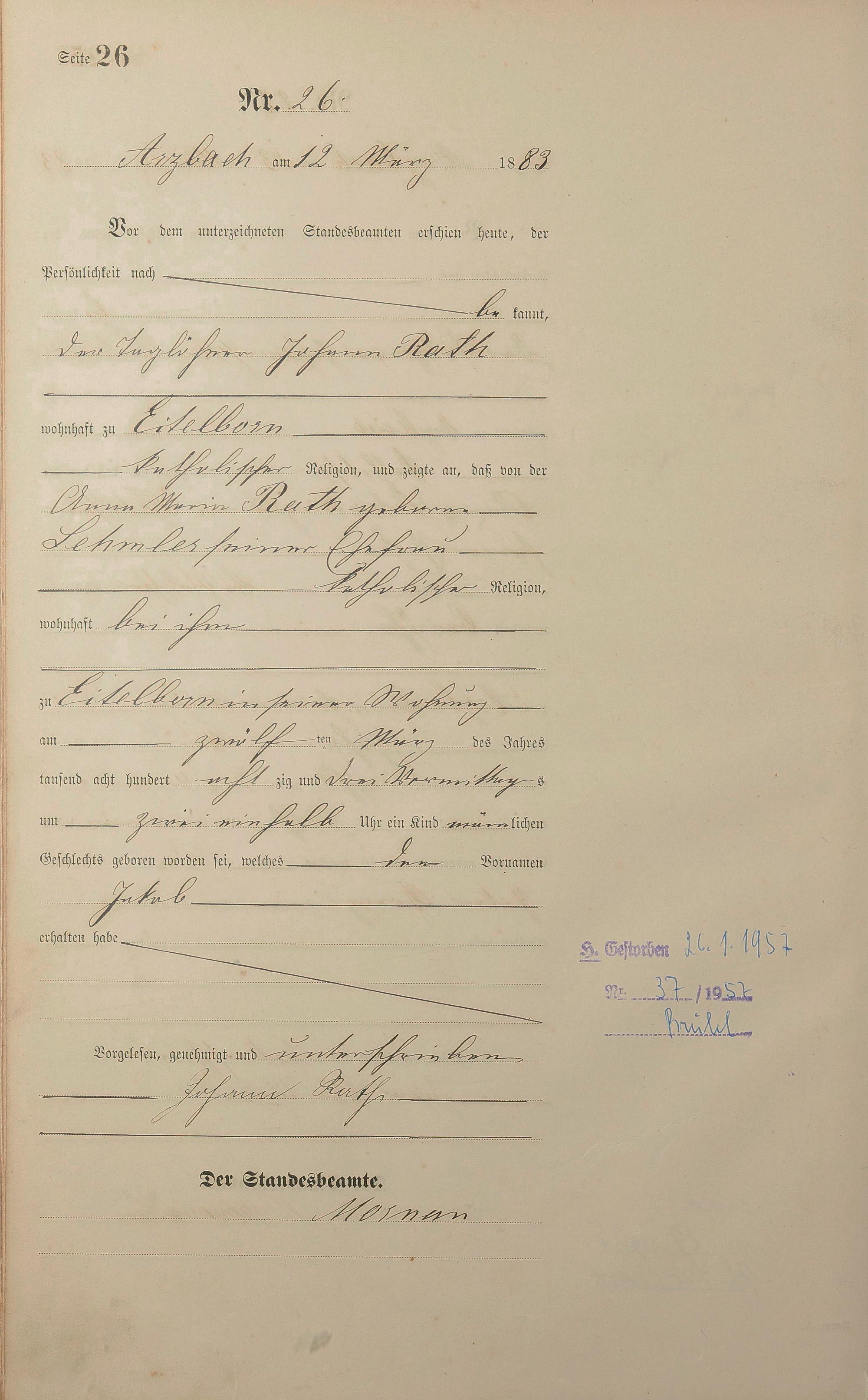Geburtsregister 1883