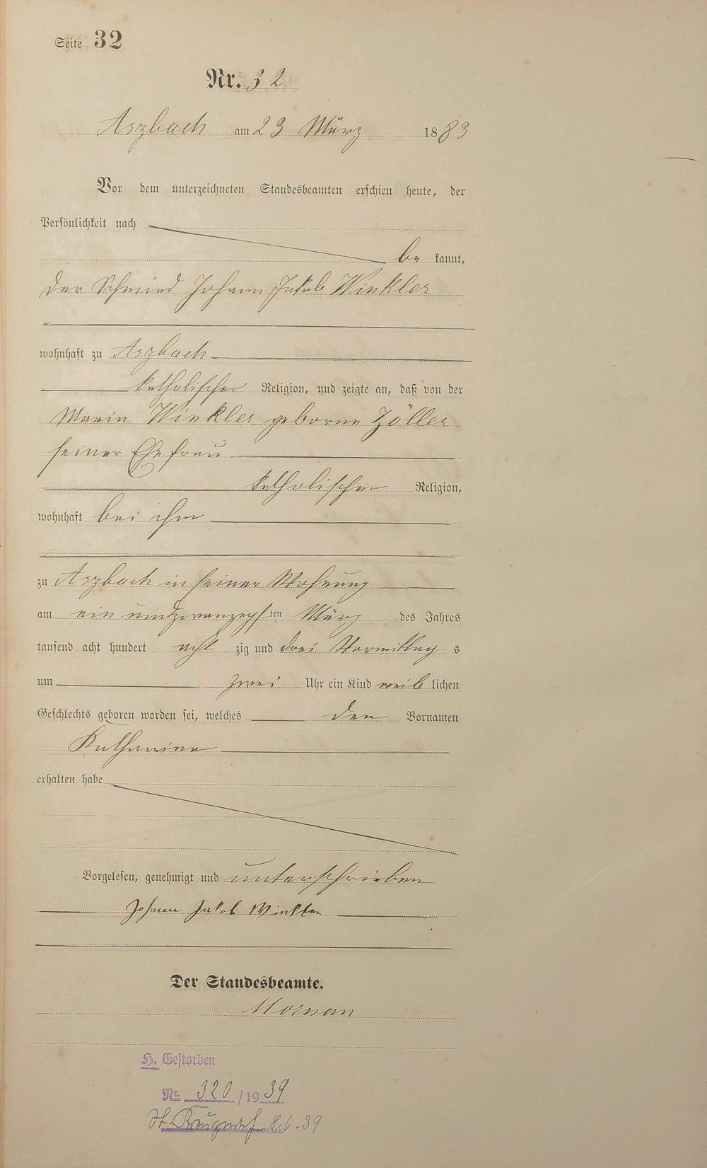 Geburtsregister 1883