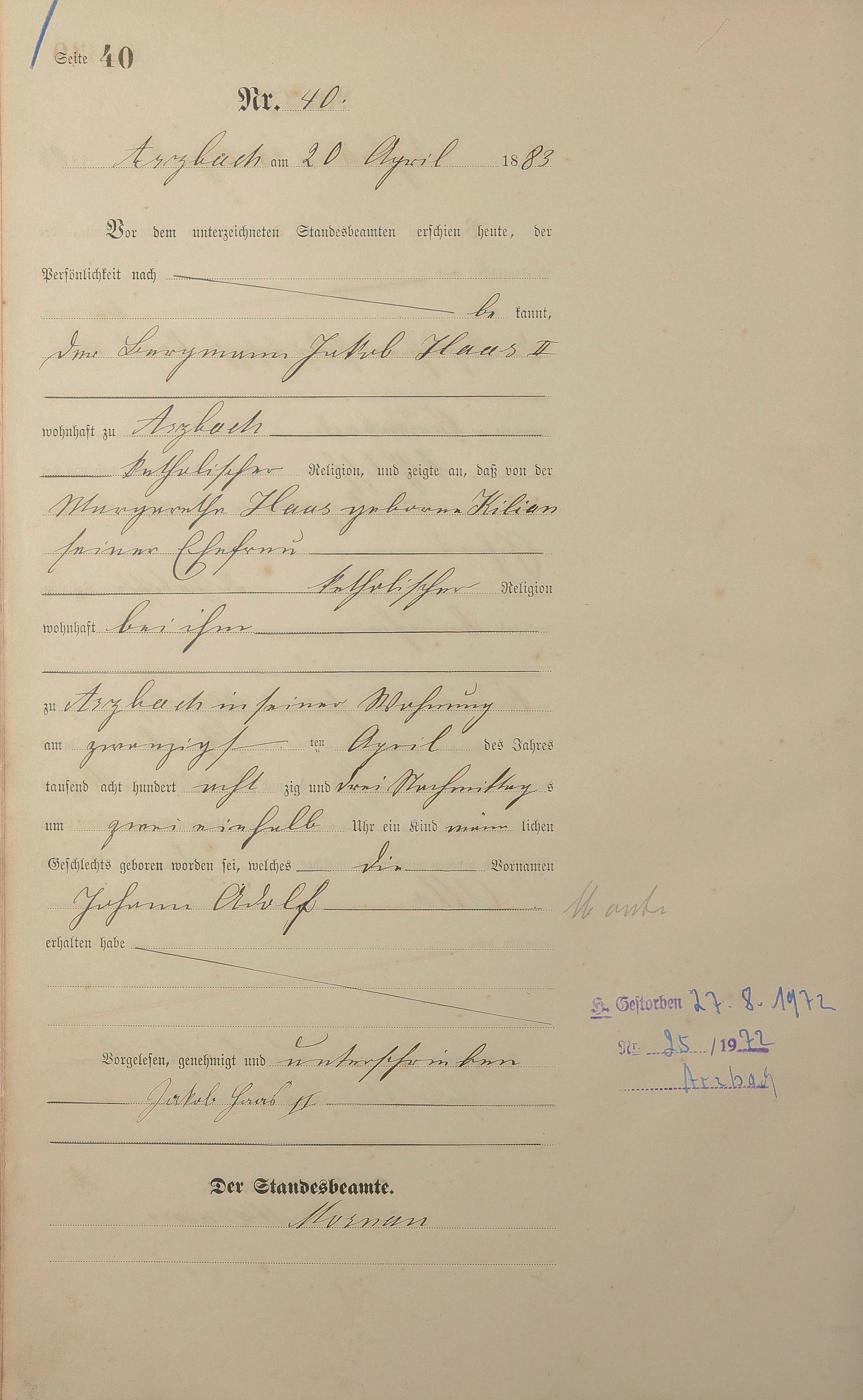 Geburtsregister 1883