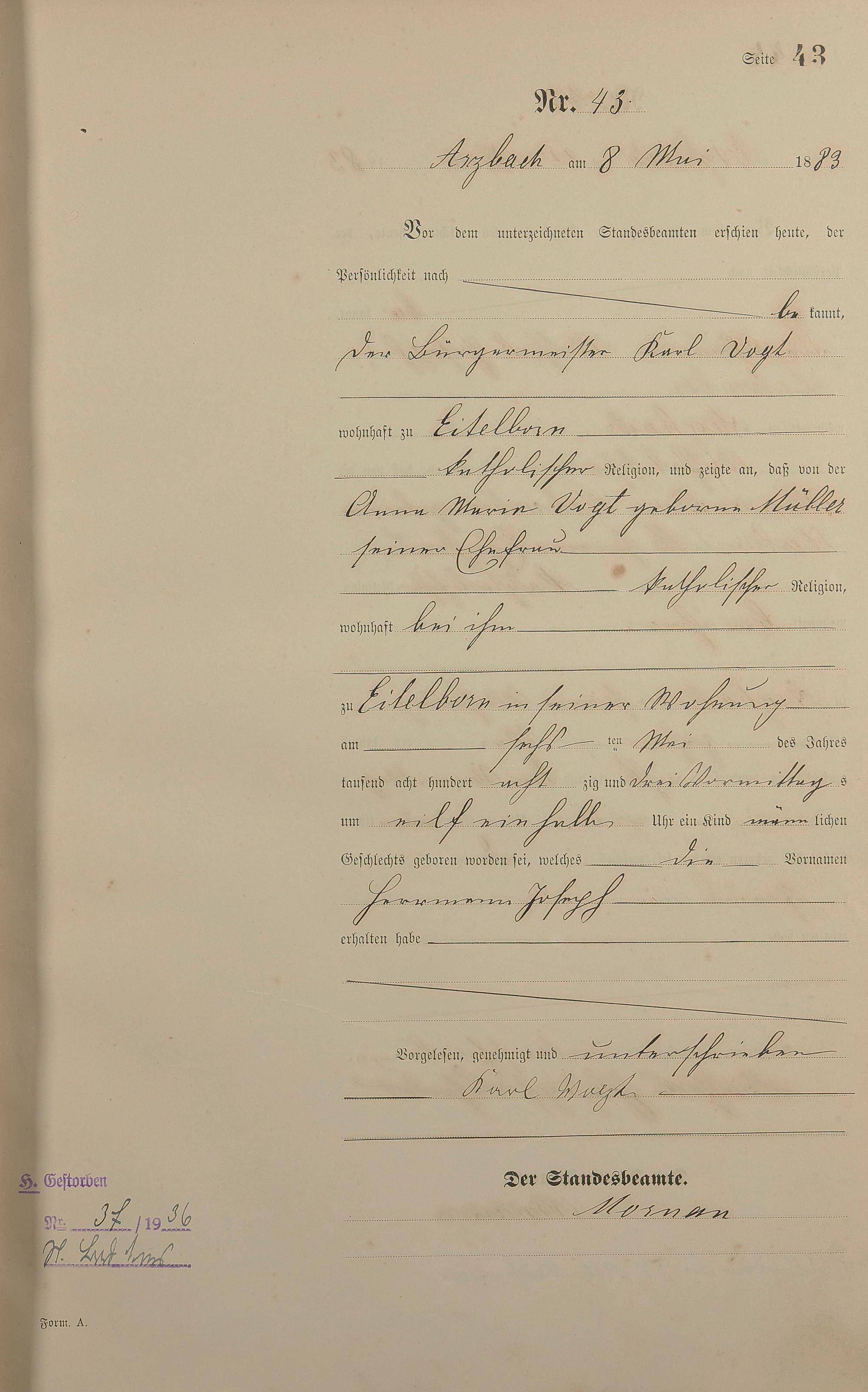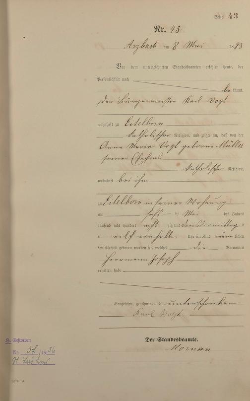 Geburtsregister 1883
