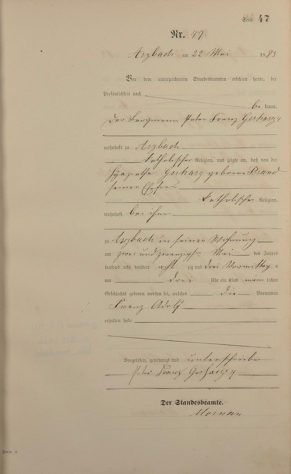Geburtsregister 1883