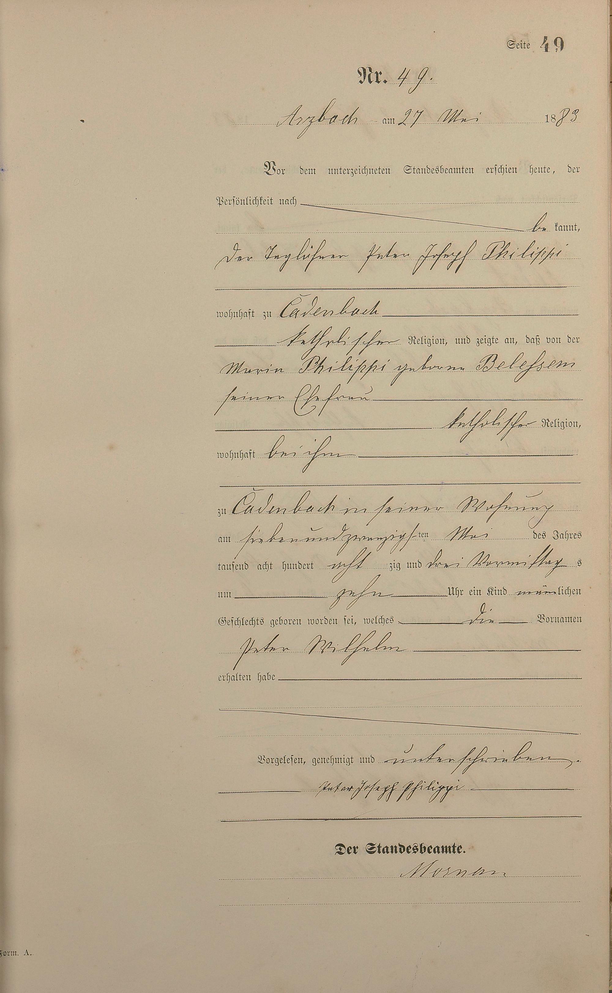 Geburtsregister 1883