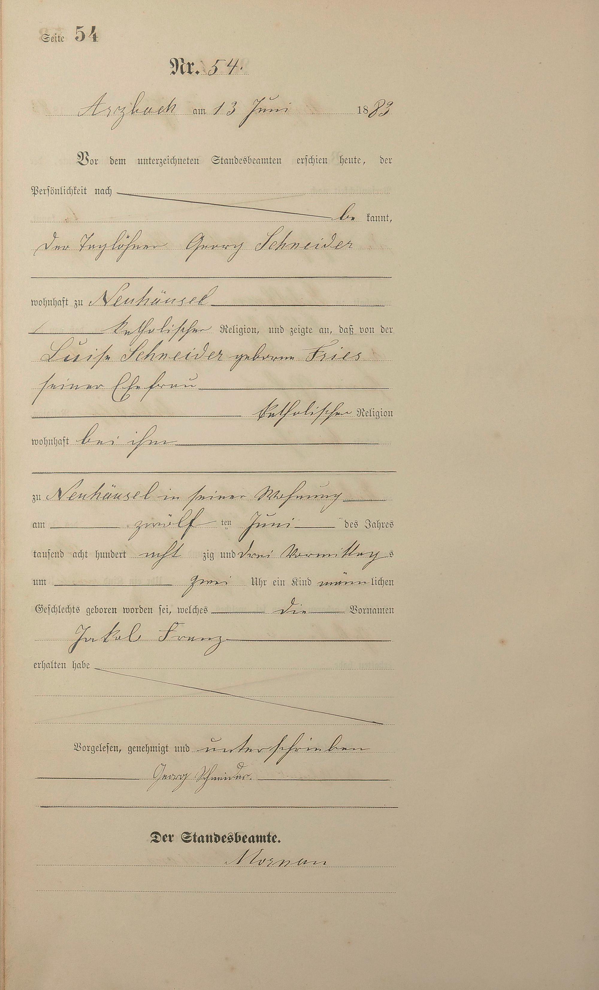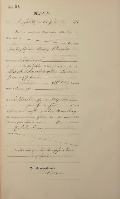 Geburtsregister 1883