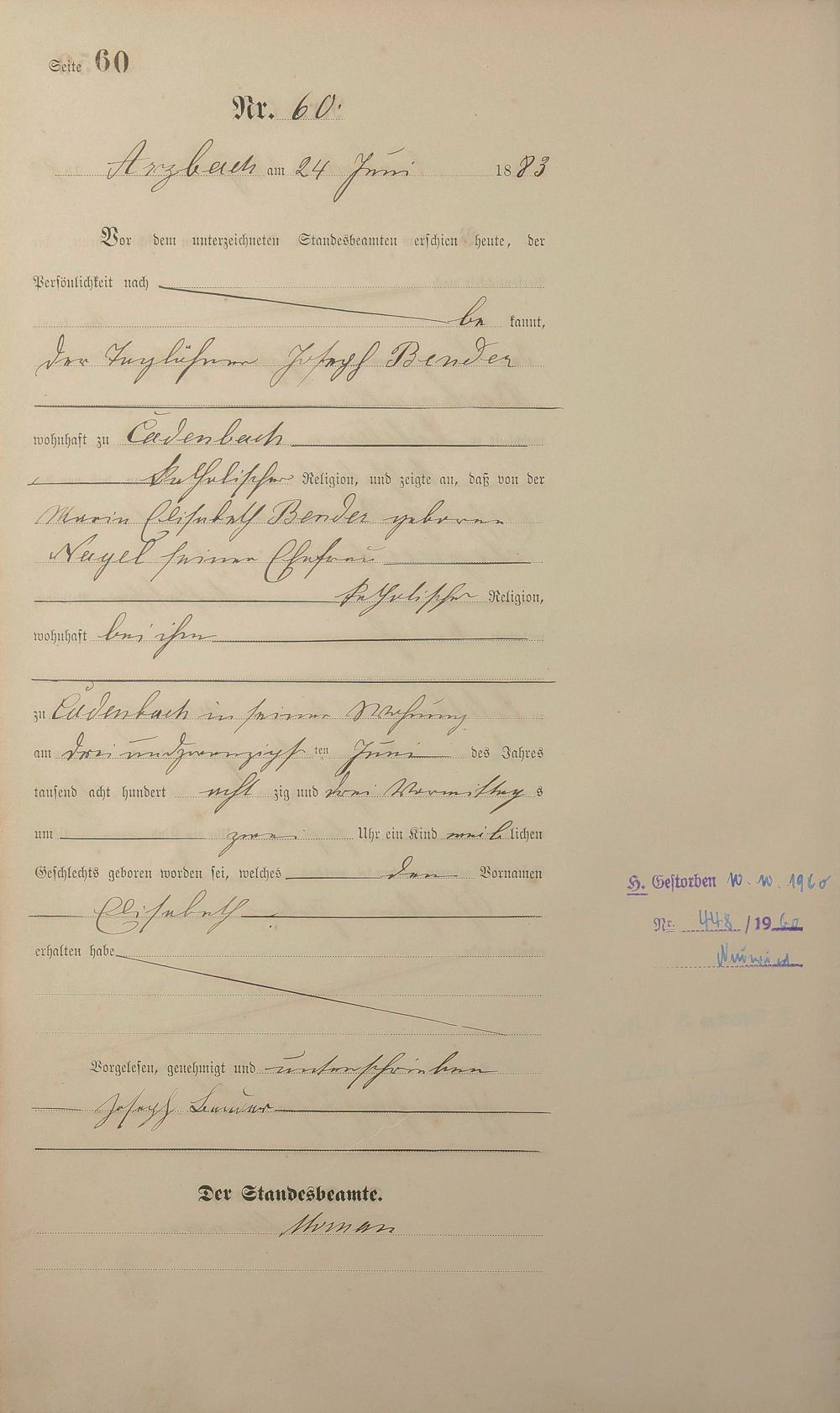 Geburtsregister 1883