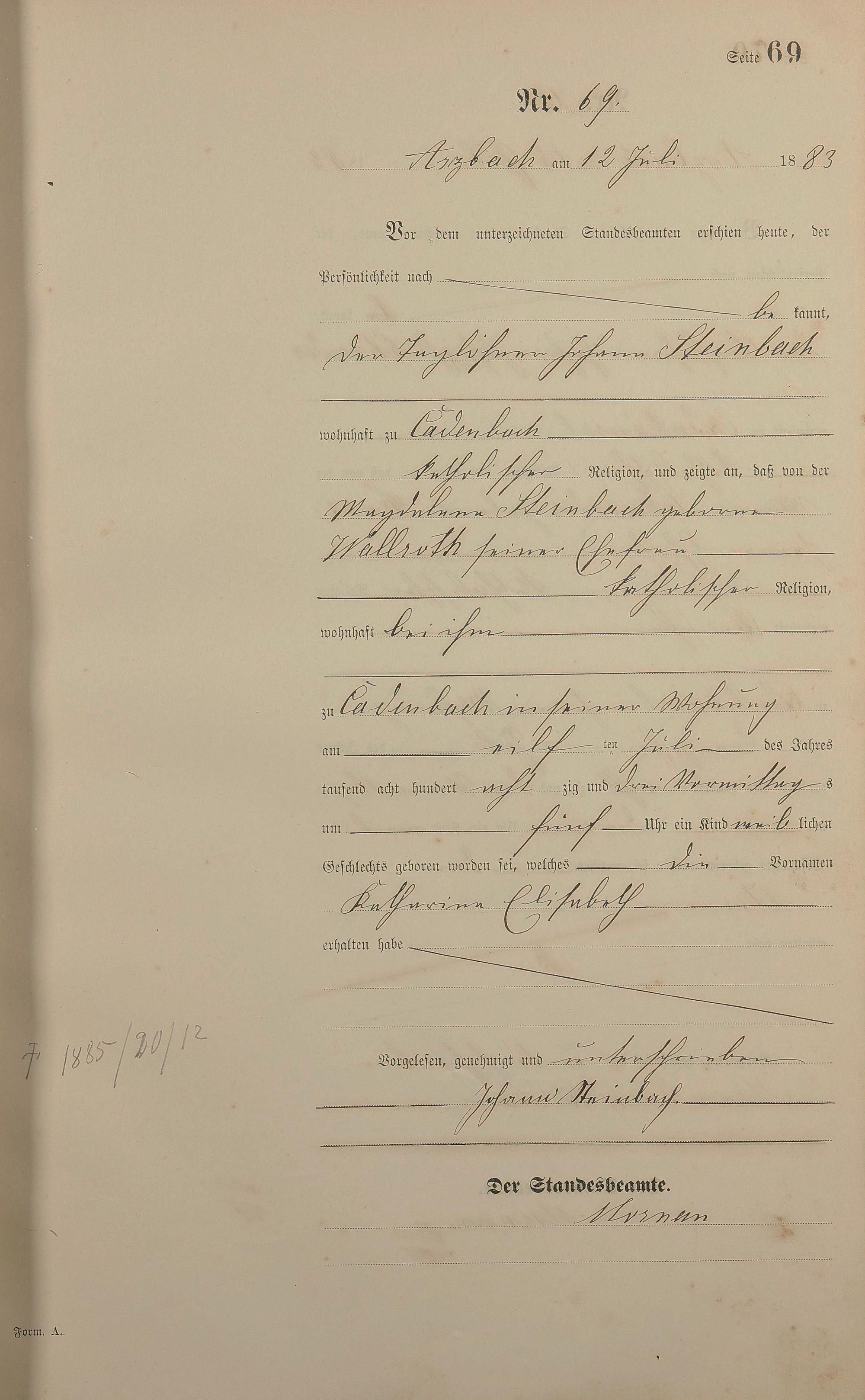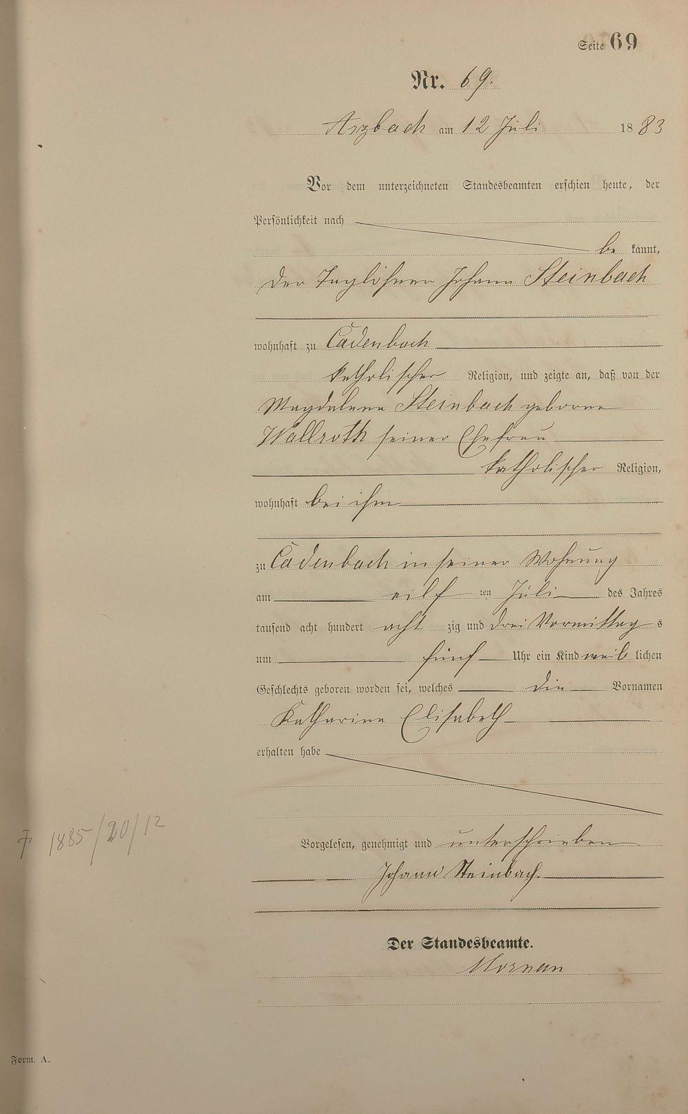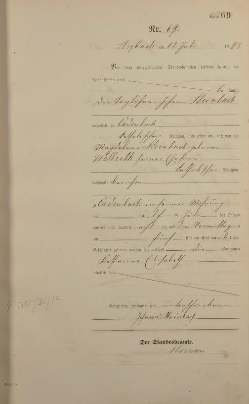 Geburtsregister 1883