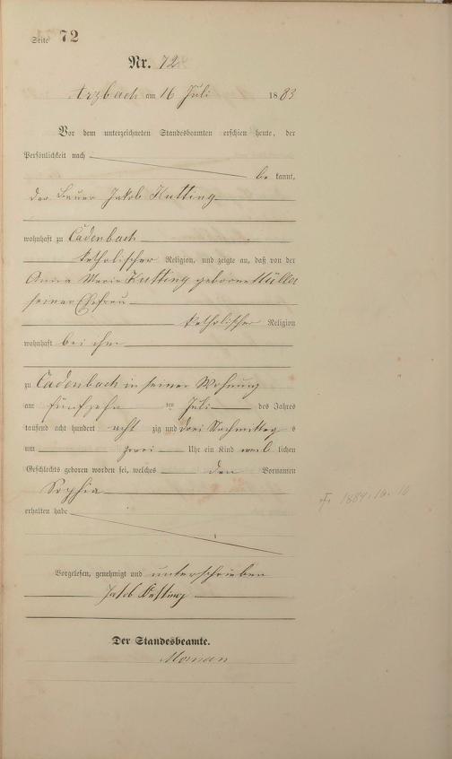 Geburtsregister 1883