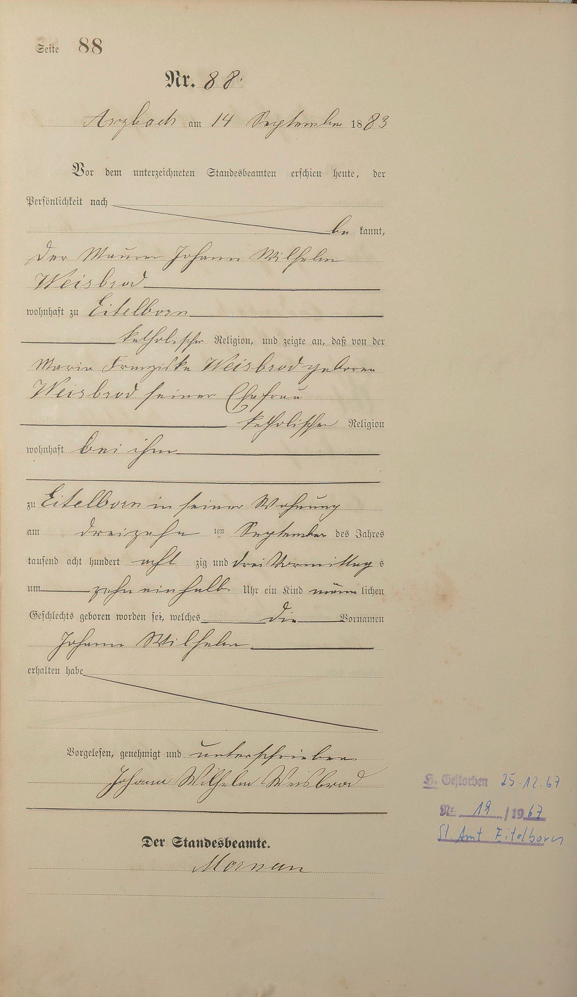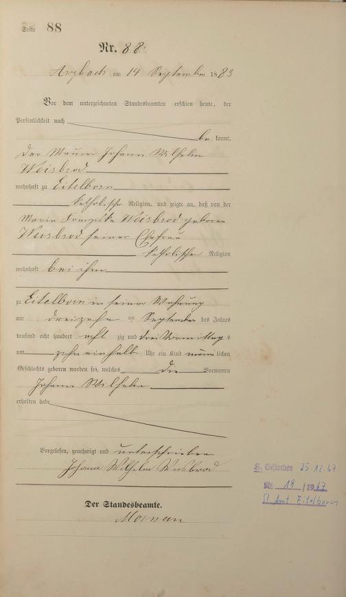 Geburtsregister 1883