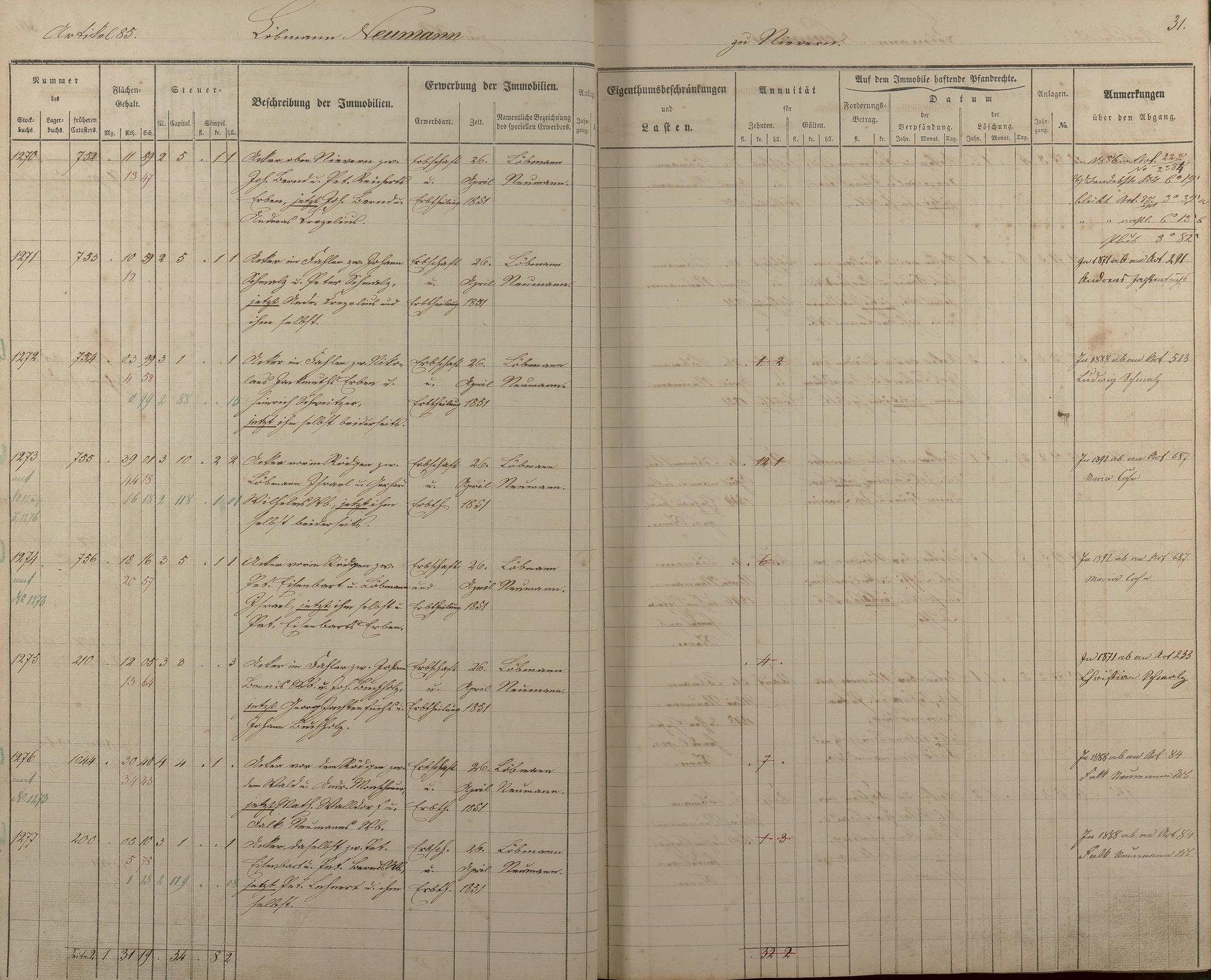 1/2: Stockbuch der Gemeinde Nievern 1854-1861