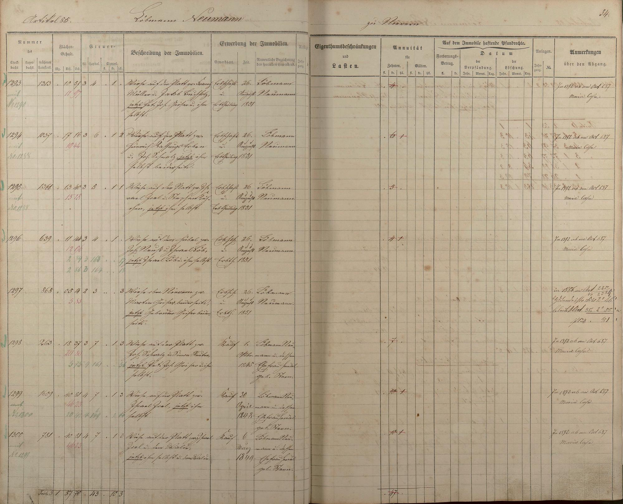 1/2: Stockbuch der Gemeinde Nievern 1854-1861