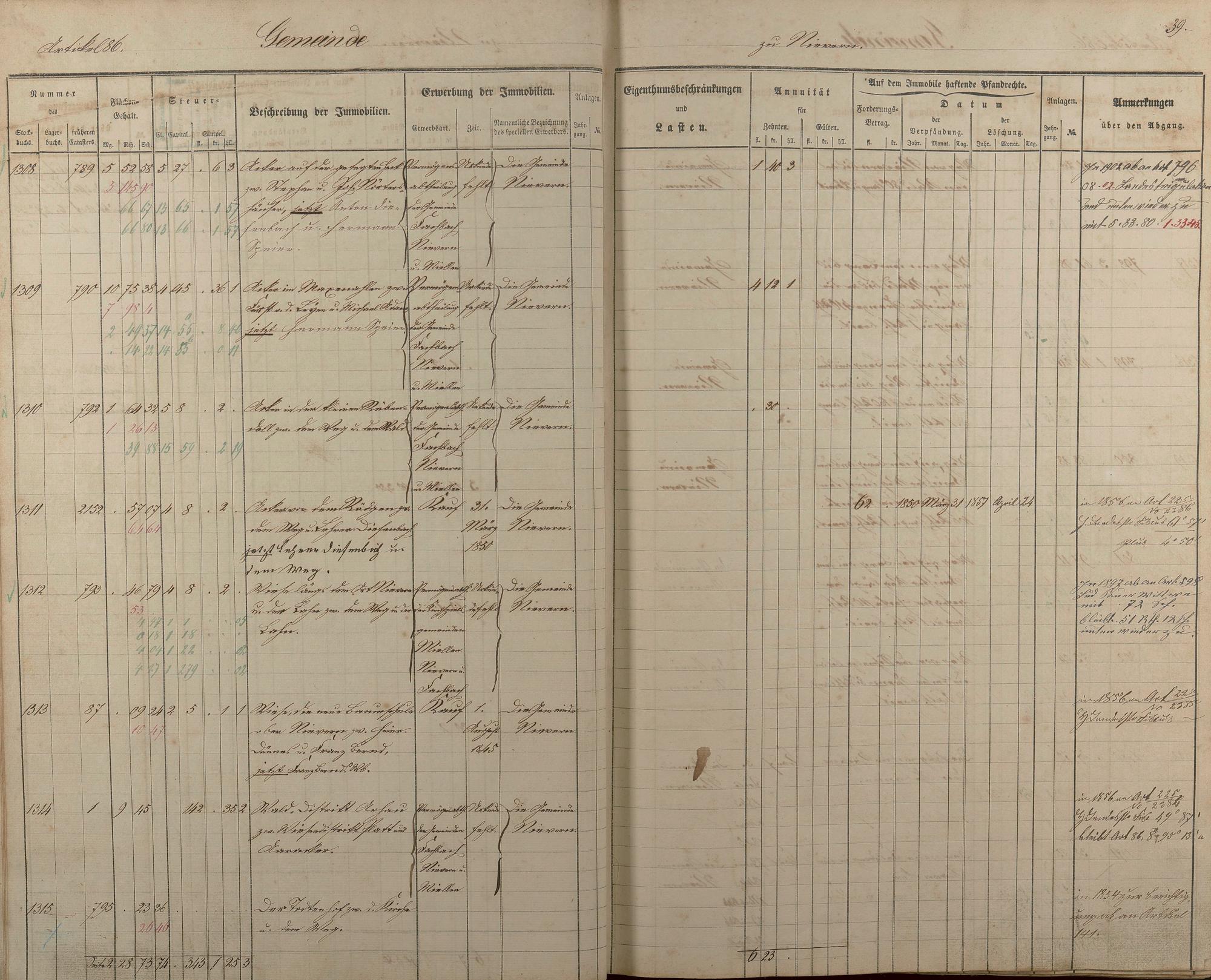 1/2: Stockbuch der Gemeinde Nievern 1854-1861