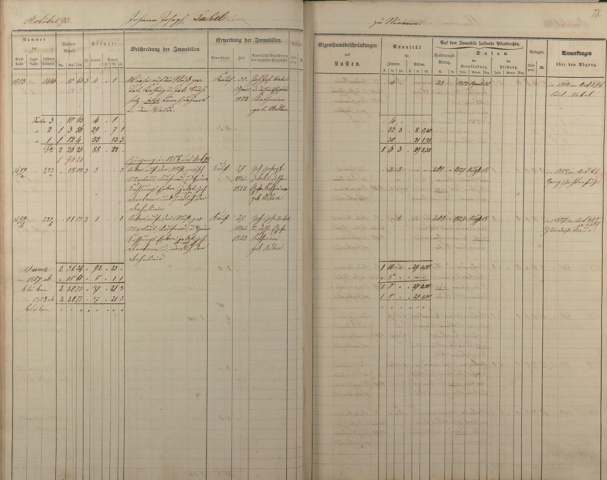 1/2: Stockbuch der Gemeinde Nievern 1854-1861